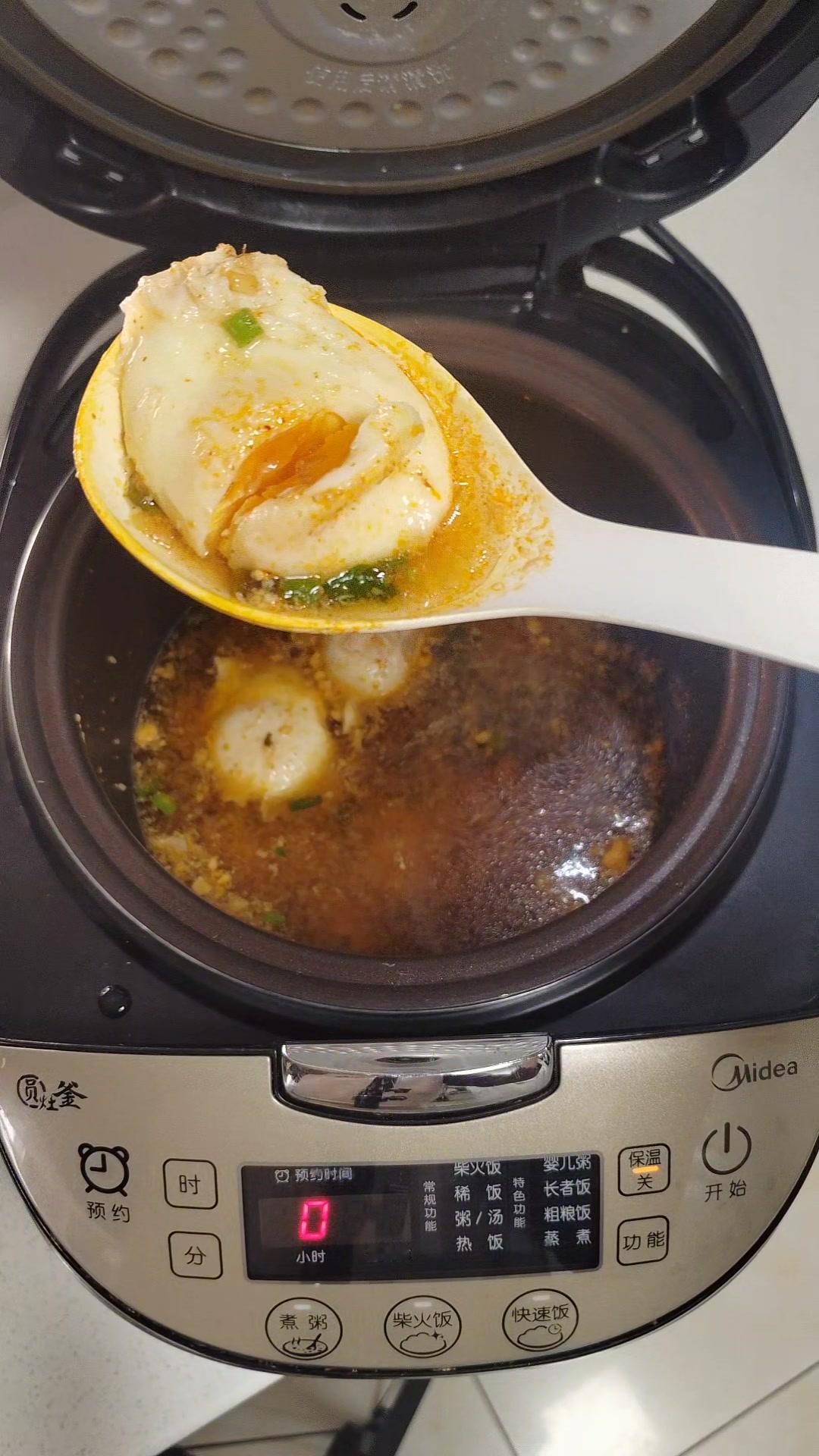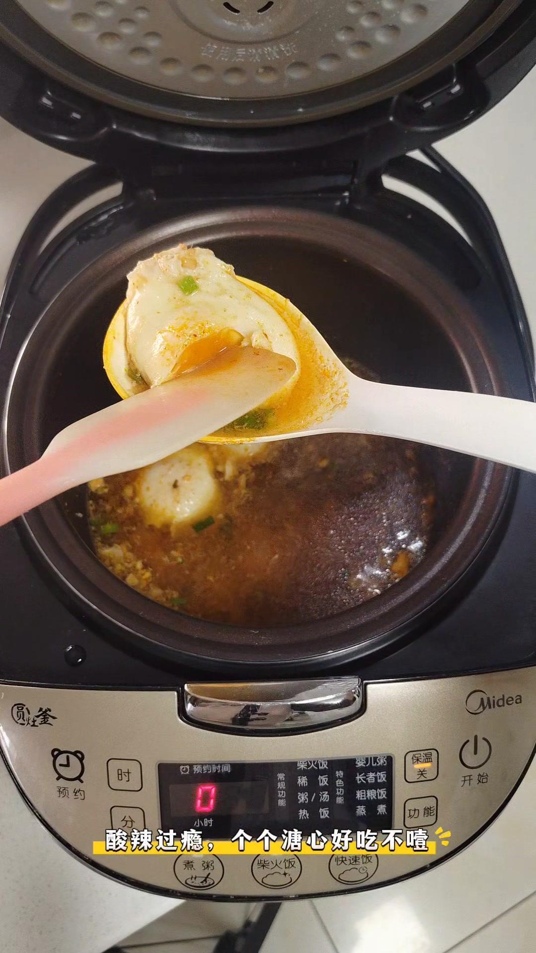 用电饭锅做酸汤荷包蛋太绝了!🍳电饭煲做酸汤荷包蛋真的超简单!油热后放虾皮增鲜,加小葱花和辣椒面,盖上锅盖焖煮3分钟出香味。喝多少汤就加多少热水,等水煮开打入鸡蛋,盖上盖子再次煮开,焖3分钟关电。加陈醋、盐、胡椒粉调味,撒上葱花,酸辣解馋,蛋黄溏心鲜美好吃。