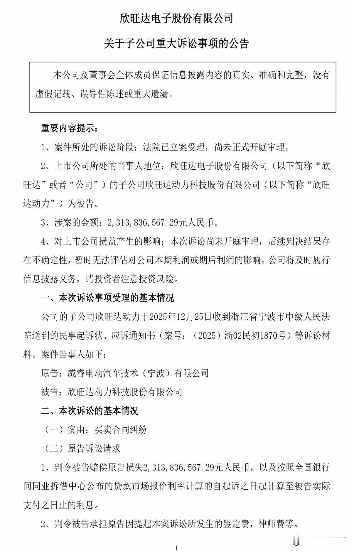 欣旺达这次可摊上大事了,被指电芯质量有问题,陷入23亿索赔诉讼,这可是个大数目。原告还是隶属吉利控股集团,看来事情不简单。欣旺达作为500亿巨头,本应在质量把控上更严格。 这索赔诉讼一旦成立,对欣旺达影响巨大。23亿可不是小数目,会影响其资金流和市场信誉。股民估计也慌了,股价说不定受冲击。吉利控股集团为维护自身权益起诉,说明问题可能真不小。希望欣旺达能妥善处理,给大众一个交代,不然这品牌形象可要大打折扣了。