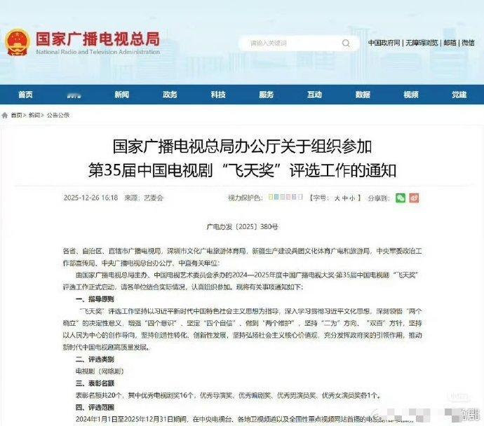 飞天奖启动报名飞天奖评选通知匠心之作终将被看见!飞天奖正式启动报名,为优质影视作