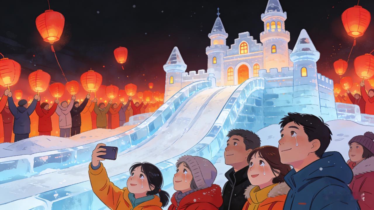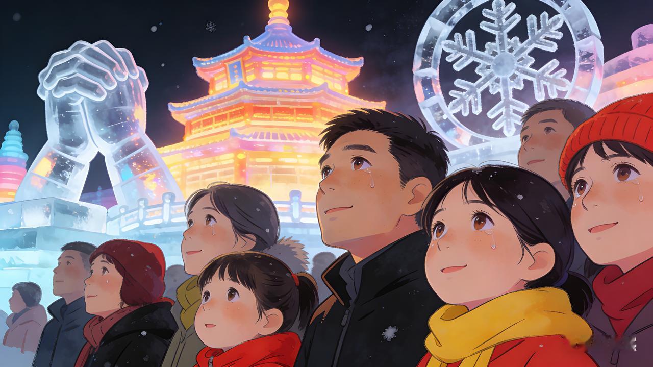 那一声自发的、滚烫的哭腔,藏着多少未说出口的情愫?是漂泊在外的游子听到乡音时的鼻酸,是隔海相望的亲人盼着团圆的执念,是怕被岁月冲淡的羁绊终于在此刻稳稳落地的踏实。这哭声里没有隔阂,只有“我们都是一家人”的笃定我们都是一家人”的笃定;没有距离,只有冰天雪地里人心相拥的温暖。 当东北大哥把一杯热姜茶塞进台湾同胞冻得通红的手里,当人群中“中国台湾”的灯牌与漫天飞雪相映,当不同口音的“回家”二字在寒风中交融——我们忽然懂了,这份感动从不是刻意煽情,而是刻在民族骨血里的本能。 从来没有“落下”,只有“等你回家”。这片冰雪筑成的天地,见证的不仅是一场冰雪节的狂欢,更是两岸同胞心往一处想、劲往一处使的赤诚,是无论走多远,都忘不了根在哪里的家国情怀。