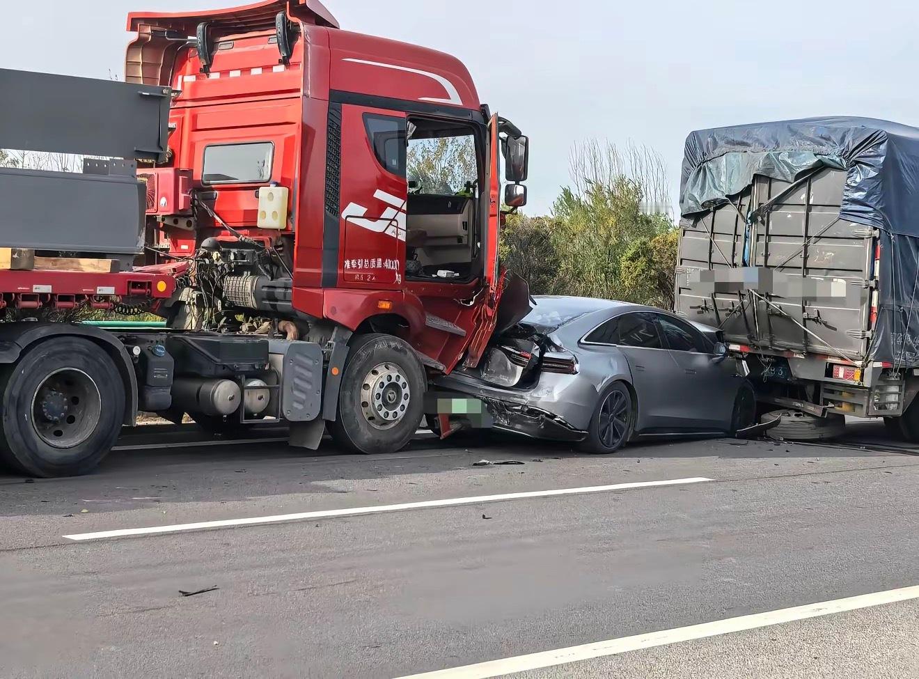 看前后大车变形程度,当时速度肯定不慢。居然用小小的身躯把大货车头和车尾都怼进去了网友遭大货夹击无恙感谢鸿蒙智行网友遭大货前后夹击竟毫发无伤