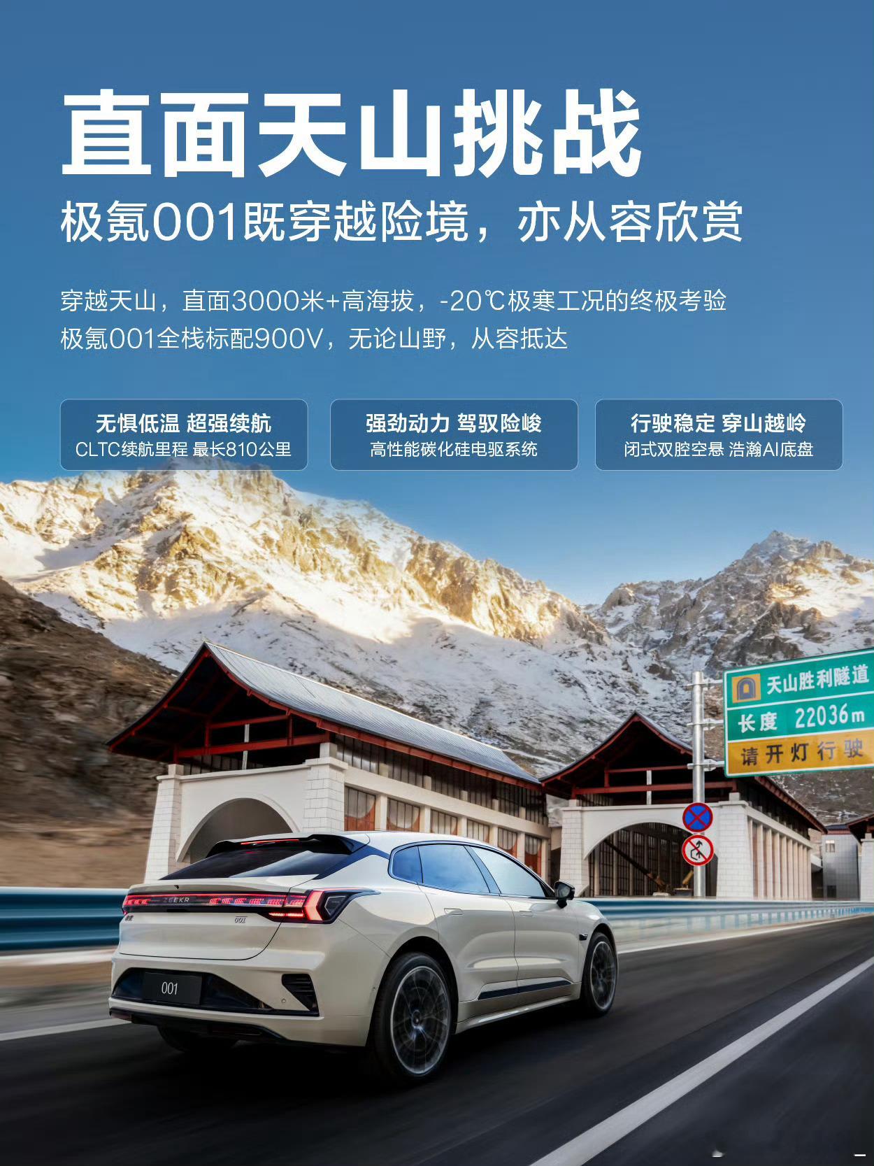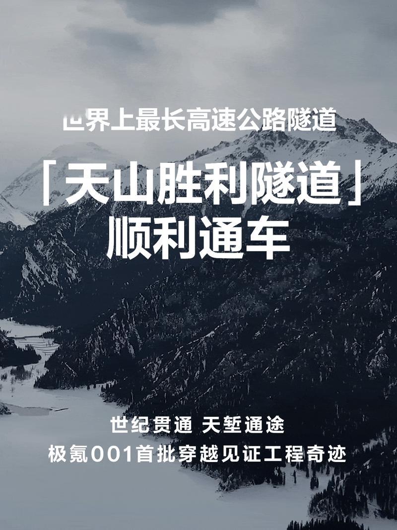 世界最长高速公路隧道通车以前开车翻越天山要几小时,现在胜利隧道通了,22公里,22分钟直达。更让我有感触的是,极氪001作为首批车队穿过隧道。这不是简单的“第一波通过”,更像是一种象征:新生的、电动的、中国制造的力量,和这条世界级的“世纪工程”同框了。猎装车的灵动身影,穿行在巍峨的雪山之下,画面里既有基建狂魔的硬核,也有中国智造的优雅。这就像在说,我们不仅能劈山开路,也能造出与这壮丽山河相匹配的、充满驾趣的智能电动车。穿过隧道不只是抵达,更是一路同行,见证这个时代的“胜利”。