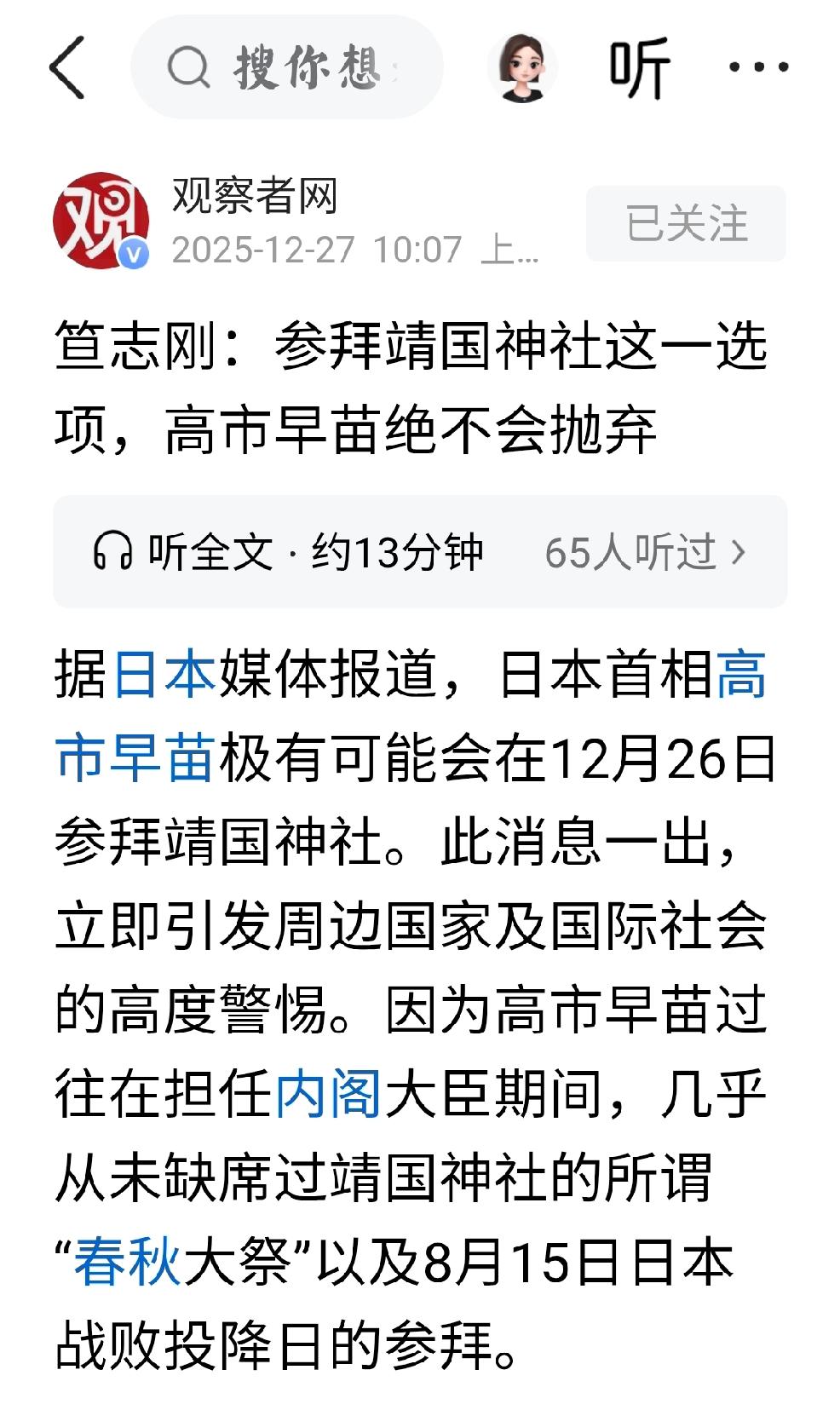 致:2026年末的自己(高市没拜鬼)特此记录 个人观点:日本当前领导层的领导人,心胸狭隘,暗生杀心,自私自利。 特此记录给未来的自己一个信息,历史给了我们一个千载难逢的,消灭宿敌的机会。所以我们要好好把握机会,绝不进行简单至极的热战,而是要进行全方位的高压高温灭杀之战。 现在就如同山君扑食一般,要先进行伏首专注,准备一击锁喉。