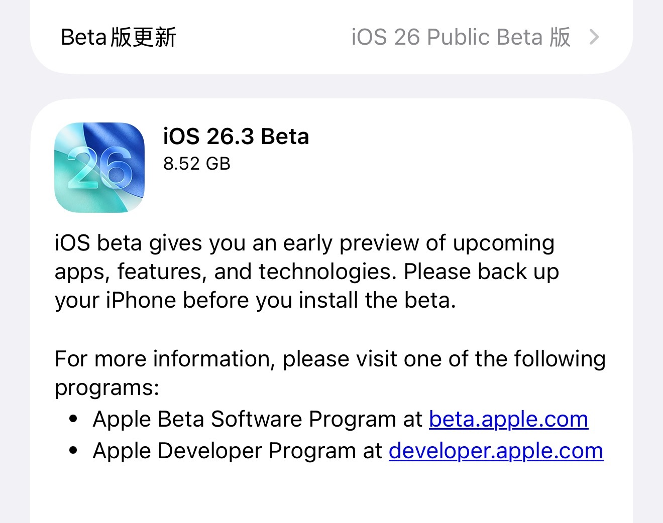 iOS 26.3公测版,这是我用过最流畅的一版iOS 26,续航还待考究。