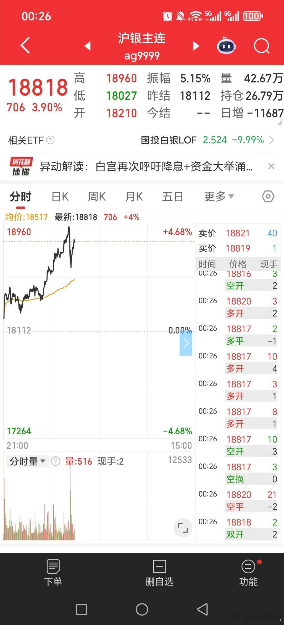 周四下午还说白银趋势还在,晚上大涨!!!但是国投白银lof两天跌停周五晚上白银再
