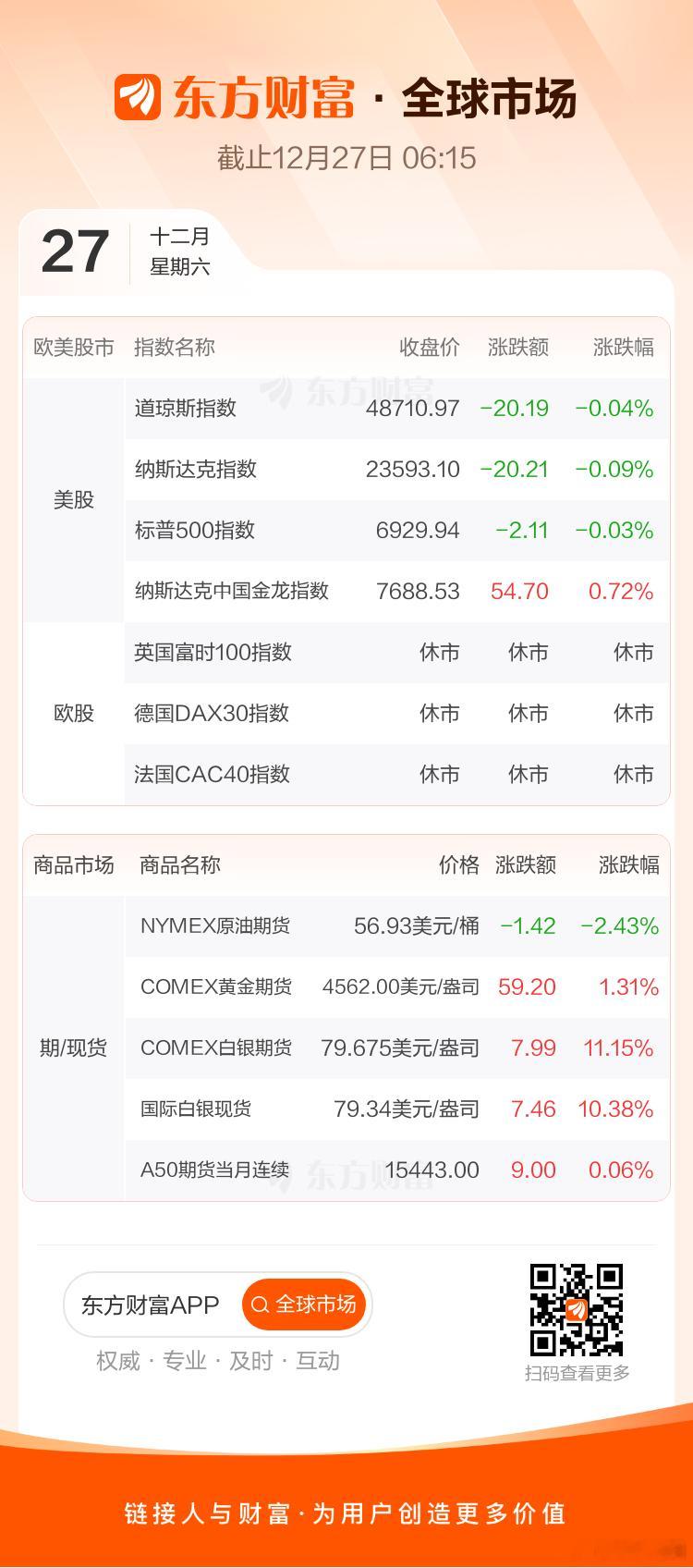 美股三大指数微跌 商业航天概念股大跌国际金银续创历史新高,COMEX黄金期货当月连续合约上涨59.20美元,涨幅1.31%,报4562.0美元/盎司。COMEX白银期货涨11.15%,报79.68美元/盎司,本周累涨18.06%;现货白银涨10.38%,报79.34美元/盎司,本周累涨18.12%。贵金属有些疯了……