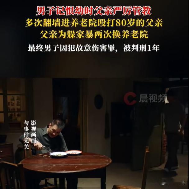 山西,男子候某因为记恨小时候父亲对自己管教非常严厉,一言不合就报复自己的父亲,对他又是打又是骂,姐姐为了保护父亲就将他送去养老人,谁知道候某翻越养老院的围墙进去殴打父亲,造成老人家二级轻伤。姐姐帮助父亲躲避家暴,再次更换养老院。后来,因为儿子的暴力行为,最终也被刑事强制拘留。 潇湘晨报·晨视频23月26日报道了这则新闻。据报道称,一直遭受儿子的殴打,父亲为了躲避家暴,前后两次更换养老院,这起儿子殴打父亲的新闻,也着实令人心寒。 “棍棒底下出孝子”,小时候父母教育子女,也是本着望子成龙的心态,父母管教才是对自己负责。谁知道,这么个人,他竟然怀恨上自己的亲生父亲了。 在候某小的时候,他就记忆犹新,父亲对他管教非常严格,动不动就是举起棍子教育自己。自从记事开始,候某就暗搓搓的憎恨自己的父亲,心想,总有一天,一定要报复他。 随着年纪的增长,候某也逐渐成年、成家,而自己的父亲却日渐年迈,候某看到自己的机会来了。 自此,他每天都要对自己的父亲拳脚相加、要么就是恶言相向。在打骂父亲的时候,候某甚至扬言:“怎么了?疼吗?当年你不就是这么揍我的吗?” 因为受不了儿子长时间这样对待自己,老父亲赶紧告诉了自己女儿,也就是候某的姐姐。听到这样的消息,姐姐非常心疼父亲,感觉一定要把父亲给带离这个充满暴力的家。 姐姐到外面去给父亲找到一家养老院,很快就给老人送了进去。本以为可以逃离殴打,谁知道候某竟然前后两次翻越养老院的围墙,为了就是潜入进来殴打父亲。 当时,候某趁工作人员一个没留意,他又潜入了养老院内,父亲当时正在床上熟睡。候某见状,上去就拽起父亲一阵“伺候”。 这一次的暴力相对,让父亲遭受了不少的伤害。老人家右侧的腓骨骨折,老人当时就疼得“嗷嗷”叫,后来去医院做了诊断,鉴定为轻伤二级。 在这个养老院已经被打了两次,姐姐痛下决心,给老爷子换个养老院吧。谁知道,儿子候某本事也大,竟然还查到老爷子现在入住的是哪家养老院,他又准备去报复父亲。 不久之后,候某又来到了新的养老院,再次翻越围墙进去,对着父亲又展开了一顿殴打。姐姐得知之后,可真的是要气死了,再次帮父亲进行转院。 看到被打伤的父亲,姐姐非常心疼,老人家如今已经80多岁了,不指望可以得到儿子的养老送终,竟然连安静的安享晚年,儿子也不肯,简直就是追在后面打,这一点实在是令人心寒。 最后,姐姐拨打了110,她准备求助于工作人员,让他们来制裁自己的弟弟。 经过审理之后决定,作为亲生儿子,候某既不履行赡养老人的义务,甚至还暴力相向,殴打老人家,构成故意伤害罪,最后被判处有期徒刑1年。 本案释法:男子长期殴打80岁父亲,并且造成对方二级轻伤,男子的行为是否违法呢?男子拒绝赡养父亲,是否将会数罪并罚? 第一、男子已经构成故意伤害罪。 根据《刑法》第二百三十四条规定,长期殴打年迈的父亲,并且造成对方二级轻伤,此举已经构成故意伤害罪。根据法律规定,会被处以三年以下有期徒刑、拘役或者管制。 面对自己的老父亲,男子痛下狠手,直接对着父亲拳打脚踢,丝毫不顾老人家的感受,最后还造成父亲二级轻伤,根据诊断报告,男子将会面临刑事责任,会受到法律的严惩。 第二、男子的行为构成虐待罪。 根据《刑法》第二百六十条规定,虐待家庭成员,情节恶劣,并且拒绝赡养老人,将会面临2年以下有期徒刑、拘役或者管制。 男子不仅不肯赡养自己的父亲,遗弃父亲,甚至还追着父亲殴打,这个行为简直就是罪大恶极。作为亲身儿子,男子的罪行还会加重,难逃法律的严惩。 纵观整个案件,候某同时触犯了故意伤害罪和虐待罪、甚至是遗弃罪,相关部门会根据一系列的证据,将候某处以数罪并罚。不管怎样,这样的恶劣行为,终将会面临法律的严厉对待。 父亲当年的每一次管教,也是饱含着对于孩子的期望,希望他不要再犯、要好好做人。但是儿子却怀恨在心,记仇了一辈子,说来也确实令人费解。对此,大家都怎么看呢?