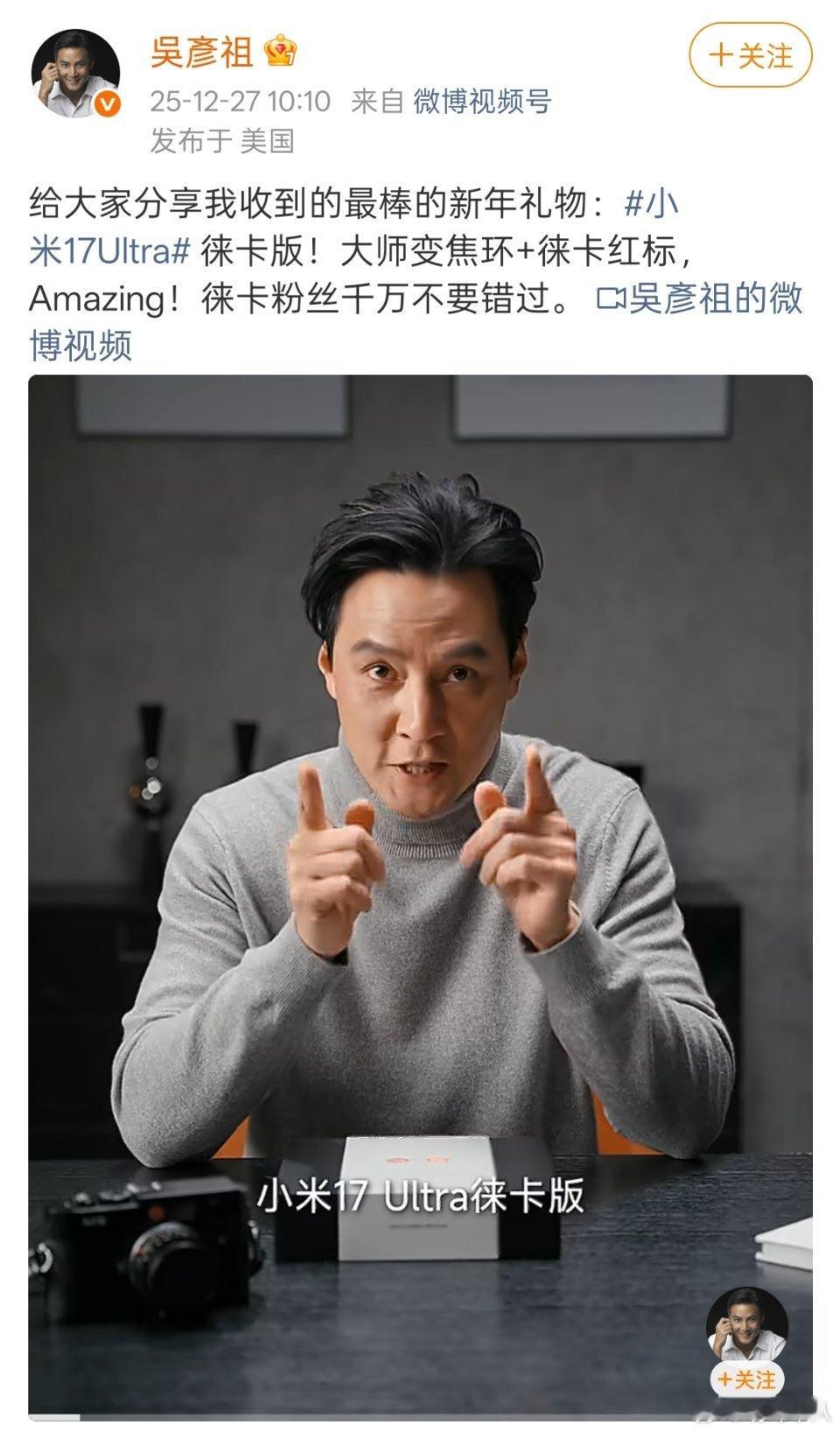 吴彦祖收到了他最棒的新年礼物——小米17 Ultra徕卡版。