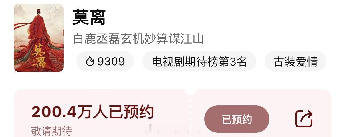 白鹿丞磊领衔主演莫离预约量破200万了呀!这部剧真的好火呀!🔥