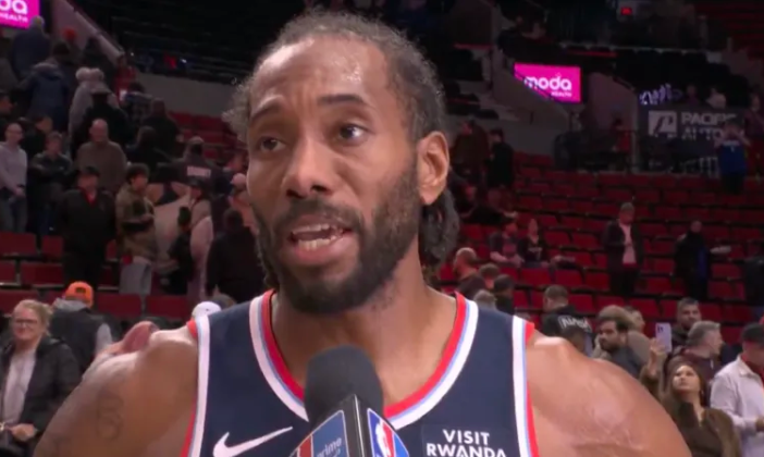 NBA常规赛,快船119-103击败开拓者。 赛后快船球员科怀-伦纳德接受了记者采访,伦纳德表示:“很高兴我们又赢下一场,尤其还是客场胜利。” 本场比赛,快船队球员科怀-伦纳德出场41分钟,投篮20中7,三分球7中2,罚球12中12,得到28分8篮板6助攻3抢断1盖帽。