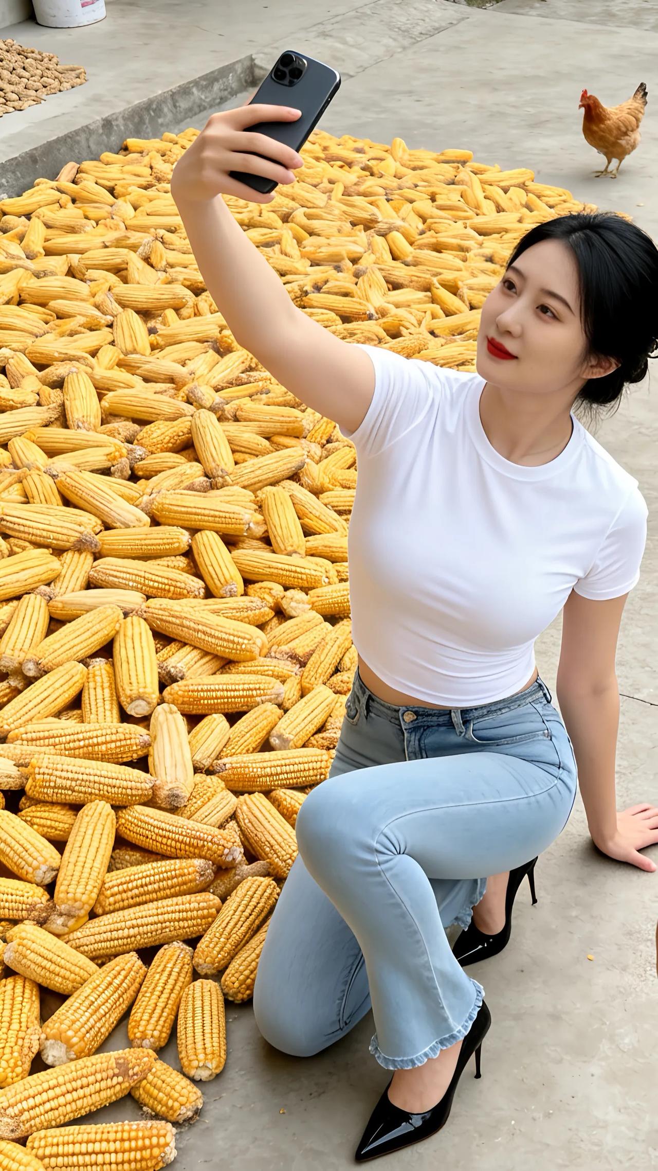 丰收的喜悦!🌽📸自拍与玉米的完美结合!