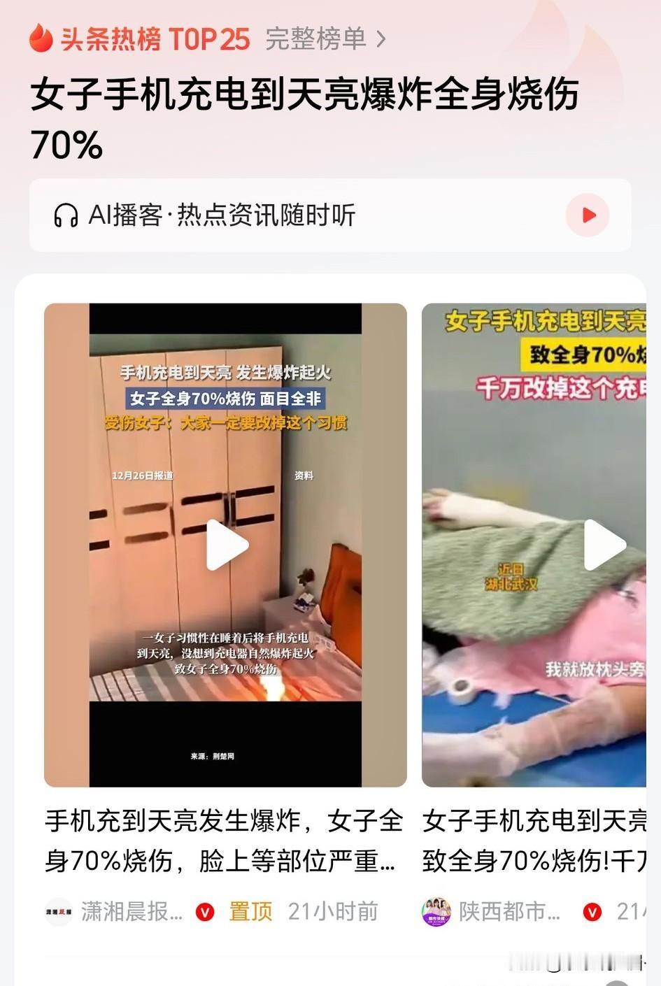 女子手机充电到天亮爆炸全身烧伤70%, 大部分人都是这么干的。爆炸概率是有的。在床头充电比较方便,第二天拿起来手机看时间,刷金币,特别的方便。 倒霉的事情发生了,只能说太不幸运了。 有网友说是因为不是原装的充电器。其实爆炸,不管是原装还是不是原装,都有这个概率。