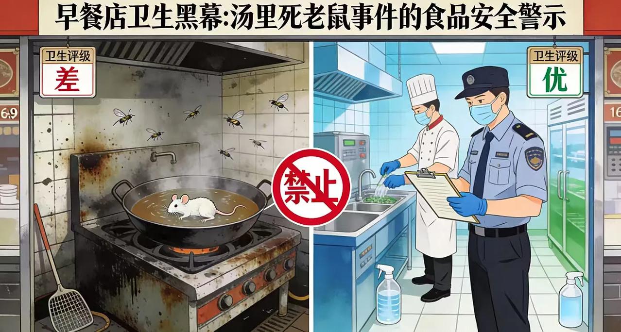 早餐店汤里惊现发白鼠尸,顾客目睹震惊,食品安全防线何处失守 清晨的炊烟中,一碗本该热气腾腾的浓汤里,竟漂浮着一只被熬得发白的死老鼠。当亲眼目睹这一幕的顾客拍下照片时,恶心、惊恐和愤怒同时涌上心头——我们舌尖上的安全防线,究竟在哪里崩溃了? 这一幕发生在湖南浏阳一家寻常的早餐店内。那只浮在汤桶表面、毛皮脱落、骨肉松散的鼠尸,与周围热气腾腾的早点形成令人作呕的对比。 顾客拍下的照片里,白色老鼠尸体在深色汤料中格外刺眼。当地市场监督管理局接到举报后迅速介入,目前该早餐店已被责令停业整顿。 01 触目惊心 在湖南浏阳一家看似普通的早餐店内,一名顾客正在等待自己的米粉。当他不经意间瞥向厨房的汤桶时,却看到了令人毛骨悚然的一幕:一只全身发白、形态完好的死老鼠,正漂浮在滚烫的浓汤表面。 这只老鼠显然已经在高温中熬煮多时,毛皮部分脱落,身体呈现熟食的白色。它随着汤的沸腾微微晃动,仿佛是这个早餐店日常烹饪的一部分。 顾客立即拿出手机拍下证据,照片中,汤桶边缘满是油渍,老鼠的轮廓清晰可见。这张照片随后在当地社交媒体上引发轩然大波,迅速成为关注的焦点。 “想到自己可能已经吃过这种汤煮的粉,我当场就吐了。”顾客在接受采访时表示,他在前一天也曾在这家店用餐。如今回忆起来,只有阵阵反胃。 02 全面调查 事发后,浏阳市市场监督管理局执法人员迅速赶到现场。调查发现,这家早餐店除了存在汤料混入异物的严重问题外,还暴露出多项食品安全隐患。 执法人员发现,该店后厨环境堪忧,卫生条件远远达不到餐饮服务的基本标准。食品原料存放不规范,生熟食品未分开处理,餐具消毒也形同虚设。 “我们已经对这家早餐店进行了查封,责令其立即停业整顿。”市场监督管理局相关负责人表示,已对该店立案调查,将依法从严处理。 同时,执法人员对周边多家餐饮单位进行了突击检查,加强食品安全宣传,防止类似事件再次发生。该局表示,将持续加大监管力度,保障市民“舌尖上的安全”。 03 黑心后厨 这家早餐店的汤中鼠尸事件,并非孤例。在中国广大的餐饮市场中,许多街边小店的后厨,都隐藏着不为人知的卫生黑幕。 “一些早餐店为了节省成本,会反复使用汤料和油脂,这本身就容易滋生细菌。”一位从业二十年的餐饮管理者透露,许多小店缺乏基本的食品安全意识,只重视味道而忽视卫生。 更令人担忧的是,这类事件往往只是冰山一角。从使用劣质原料、回收剩菜再加工,到餐具不消毒、工作人员无健康证,许多看似红火的餐饮小店,背后都隐藏着触目惊心的卫生问题。 一位卫生监督部门的工作人员坦言:“我们人手有限,很难做到对所有餐饮单位进行常态化监管。很多问题都是等到被消费者举报,我们才能发现。” 04 如何防范 面对早餐店汤中老鼠这样的极端事件,消费者应如何保护自己?监管部门和餐饮企业又该如何作为? 消费者在外就餐时,首先应注意观察餐厅的卫生环境。如果店面明显脏乱、工作人员操作不规范,最好选择其他餐厅。同时,留意餐厅是否公示食品经营许可证和从业人员健康证明。 市场监管部门需要建立更加严格的日常检查机制,特别是对小微餐饮单位,应增加检查频次,实施突击检查,并加大对违规行为的处罚力度,形成有效威慑。 餐饮企业应自觉建立和完善内部食品安全管理制度,从原料采购、储存、加工到餐具消毒,每个环节都应规范操作。食品加工区域应定期开展虫害防治工作,避免老鼠、蟑螂等有害生物污染食品。 截至发稿时,涉事早餐店依然大门紧闭,门上贴着封条。周边居民表示,他们再也不会光顾这家店,甚至对整个区域的餐饮卫生都产生了疑虑。 那只被熬得发白的死老鼠,不仅毁掉了一家早餐店的信誉,也折射出中国餐饮行业在高速发展背后亟待解决的食品安全问题。 当最基本的卫生底线被突破,任何美味都会变得令人作呕。这只漂浮在汤中的老鼠,应该成为整个餐饮行业的警钟,提醒每一个从业者:食品安全的防线一旦失守,失去的将不止是顾客,更是整个行业的公信力。食品中毒 老鼠药中毒 厨房惊现老鼠 餐饮老鼠事件 餐桌上发现蛆 鼠尸臭 鼠人腐尸