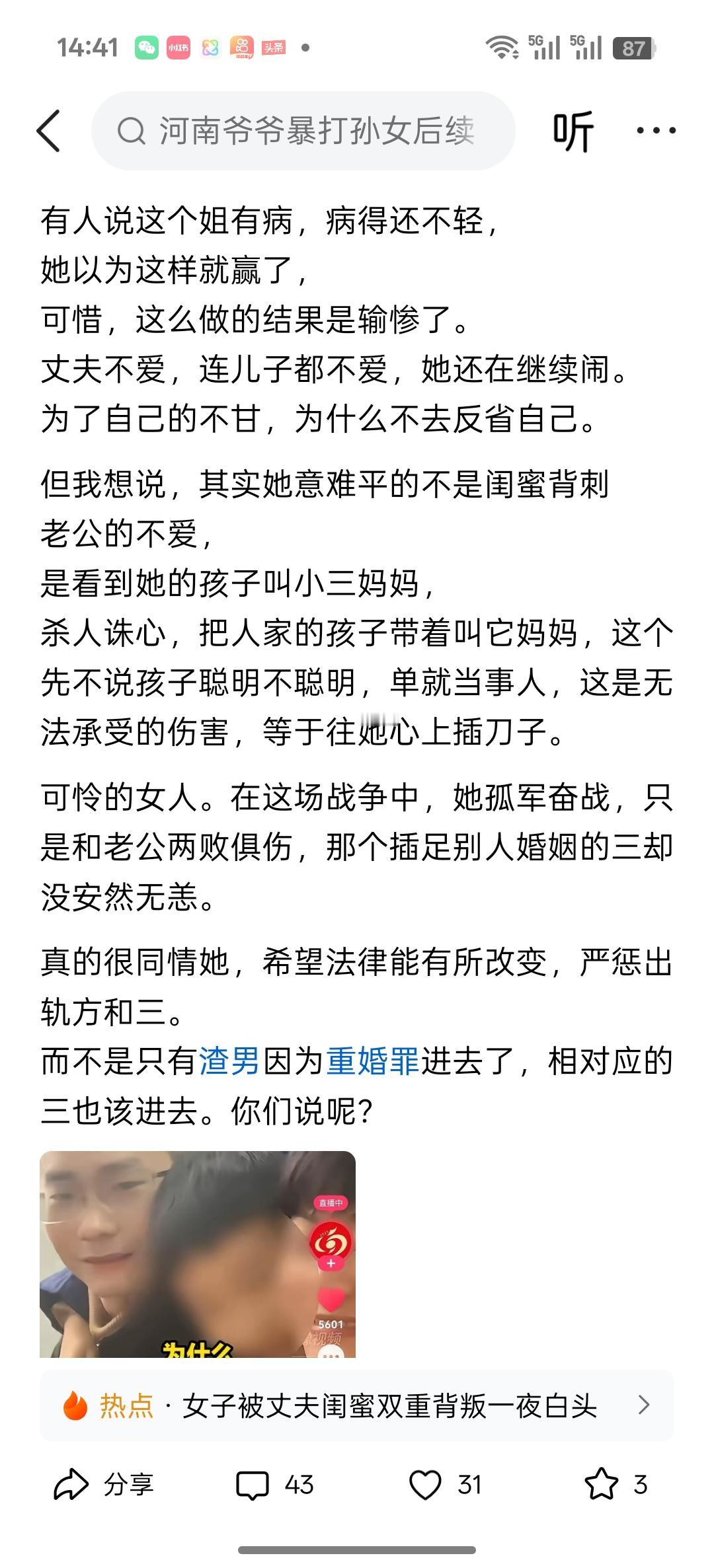 如果只是单纯的感情背叛,她可能不至于,但是那俩人简直是要赶尽杀绝呀[流泪]。财产,感情,儿子我的天。他们要拿走属于她的一切。