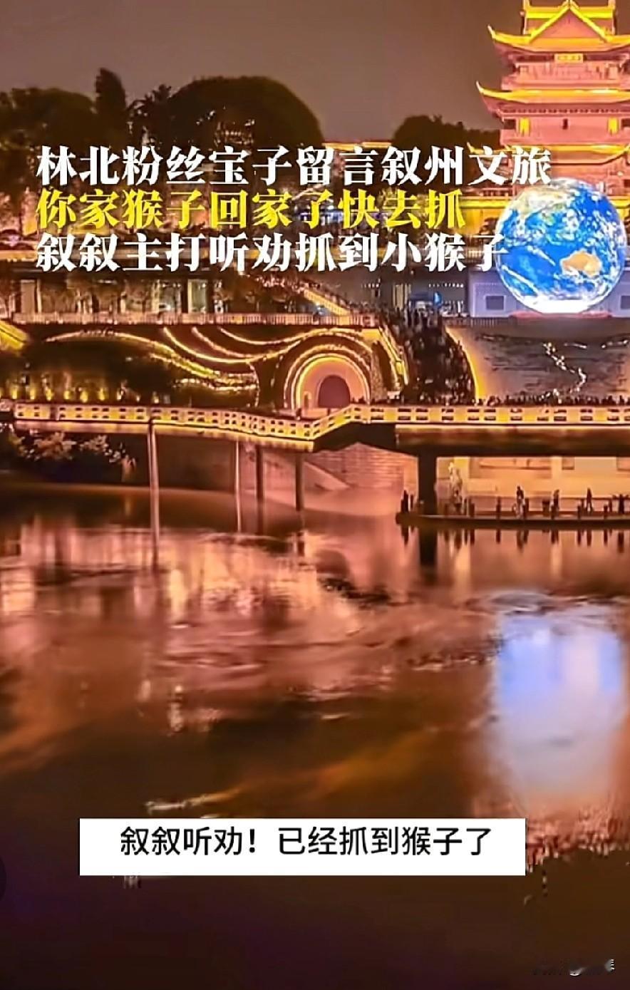 宜宾文旅这波操作超圈粉![赞] 00后宜宾小伙林北(张博林)从张家界荒野赛退赛后返乡,宜宾文旅兑现承诺,带他深度打卡家乡核心景区、吃遍地道美食,还联动他为家乡旅游做宣传,流量与乡情双丰收。 当粉丝一句“你家猴子回家了快去抓”的玩梗,被叙州文旅稳稳接住。 “叙叙听劝!已经抓到小猴子了”。没有生硬的宣传套路,只有带着烟火气的互动,工作人员陪着林北逛冠英古街的灯火,看三江口的夜色,尝燃面的鲜香、李庄白肉的醇厚,把宜宾的山水人文,揉进这场温情的家乡重逢里。 这不是一次简单的接待,是宜宾文旅对家乡人的诚意,更是对流量的巧妙转化。林北的荒野故事遇上宜宾的烟火人间,让蜀南竹海的翠、兴文石海的奇、叙州古街的暖,通过最接地气的方式被看见。 原来最好的旅游宣传,从不是冰冷的广告,而是家乡张开怀抱说的那句:“欢迎回家,也欢迎你来。” 愿更多像林北这样的年轻人加入为家乡宣传的队伍中来,让美丽的又幸福的宜宾感染更多外地游客,为宜宾的建设添砖加瓦![比心] 网眼看宜宾