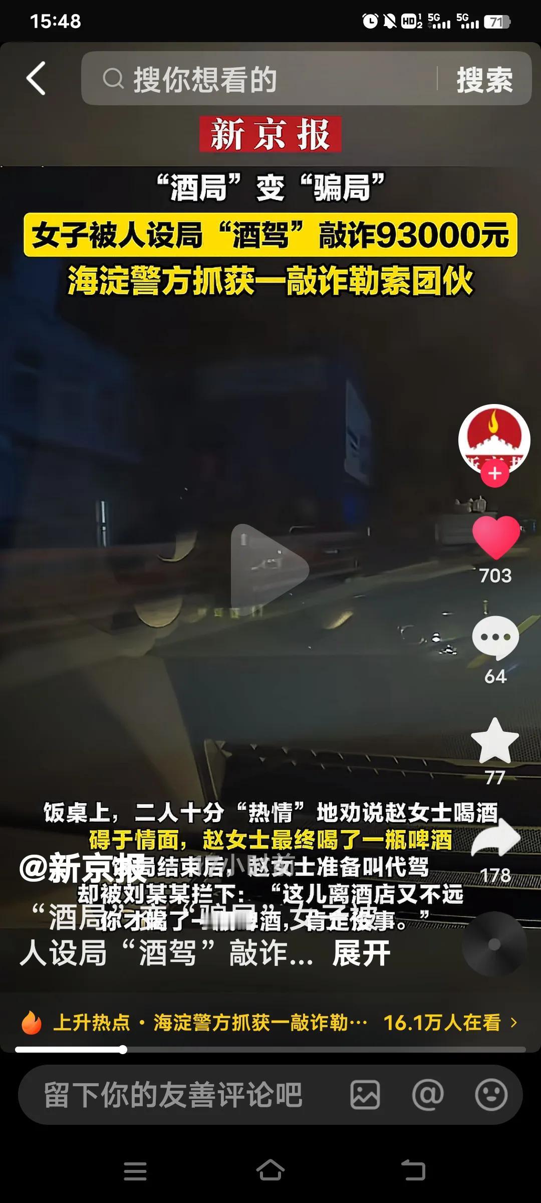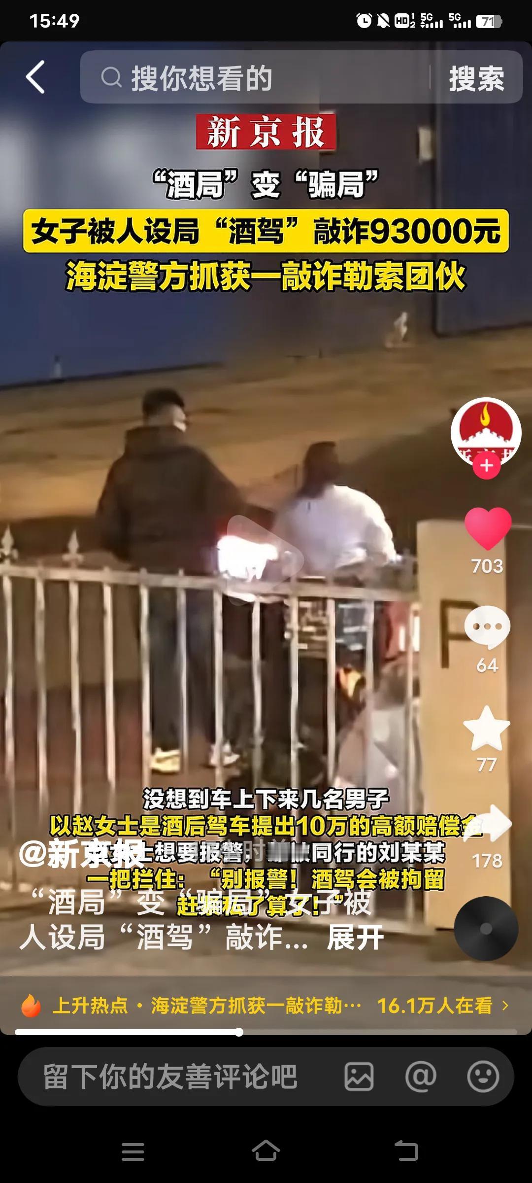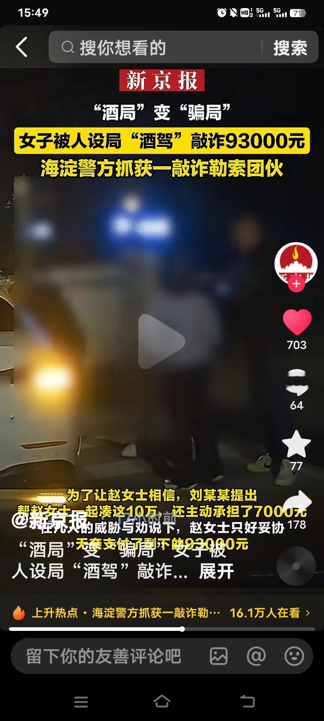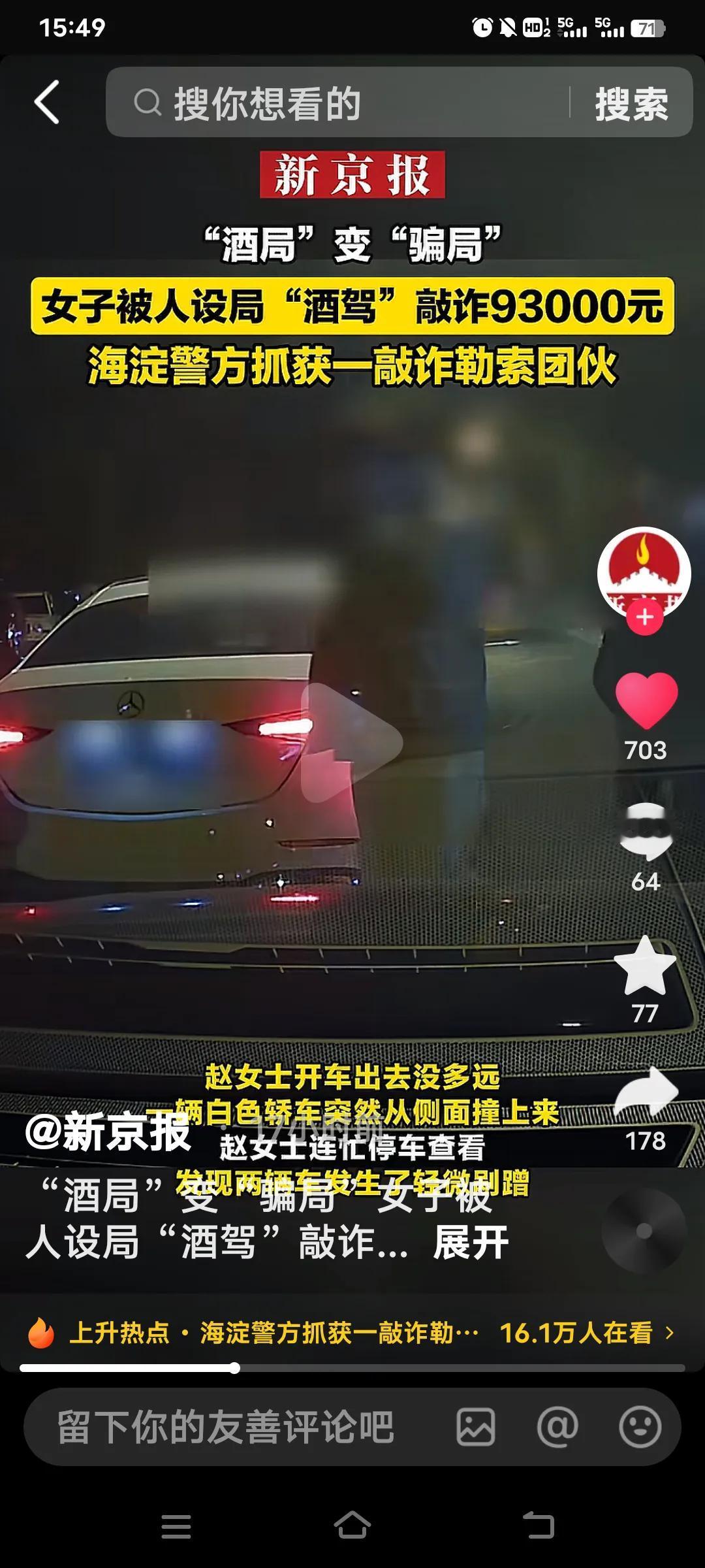 如今的诈骗手段实在是让人防不胜防!北京海淀有位女子就落入了“酒驾碰瓷”的圈套。女子赵女士在网上结识了刘某某,线下闲聊时无意间提及自己有一辆名牌轿车,此后刘某某愈发殷勤,还约她吃饭。 饭桌上,刘某某和他的朋友不断劝酒,赵女士喝了一瓶啤酒。饭局结束准备叫代驾,却被刘某某拦下,称这点酒开车没问题。结果刚上路,就有一辆白色轿车冲过来剐蹭。对方以酒驾为由索赔10万,刘某某还阻拦赵女士报警。为让赵女士信服,刘某还掏出7000块钱凑够10万。 最终,赵女士被敲诈了93000元。第二天,赵女士突然回过神来,觉得事情太过凑巧,便报了警。好在警方给力,一举打掉了这个5人敲诈勒索团伙,将他们全部捉拿归案。原来刘某和这几人早有交情。他自述结识赵女士后,得知她有些钱财便起了贪念,精心策划了这场“劝酒+酒驾”还故意碰瓷的骗中骗。 大家一定要擦亮眼睛,千万别上当受骗!只能说女的一片真心,男人却心怀不轨,这手段也太卑劣了!人心难测,网友见面可没那么简单啊!车碰瓷 碰瓷陷阱 网约车碰瓷骗局 北京网络骗子
