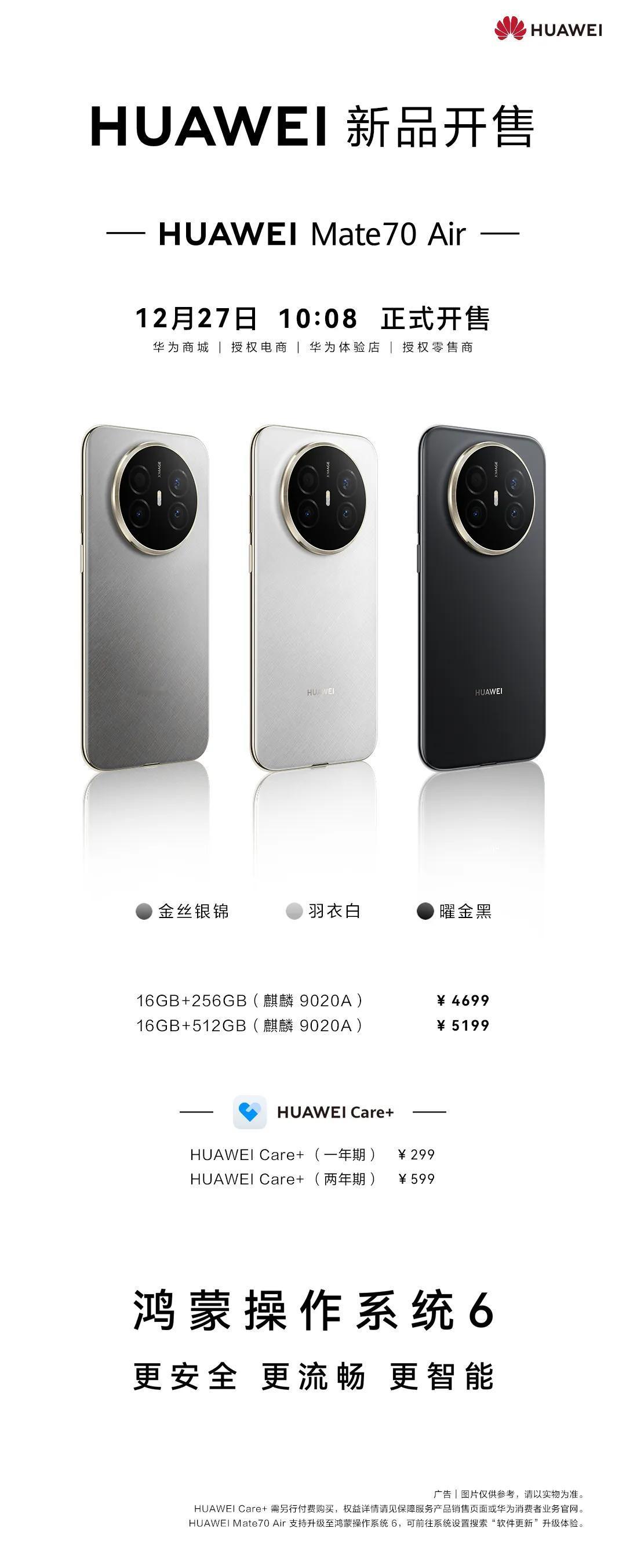 轻薄与实力并行,华为Mate 70 Air 16GB版本发布,办公娱乐场景体验拉满 在今年的手机行业,我认为最适合购买的一款旗舰机,那就是华为Mate70 Air了,凭借6.6毫米的纤薄机身、7英寸的大屏与全能配置的巧妙融合,赢得了市场的广泛赞誉。对于经常打游戏或者办公用户的人来说,大运存就是必选项,为了解决用户的需求,16GB新版本来了,16GB超大运存加上麒麟9020A芯片,后台运行更流畅,多个应用来回切换不会卡顿。 华为Mate 70 Air机身内置6500mAh华为巨鲸大电池,搭配66W华为超级快充技术,能够轻松满足用户一天的高频使用需求。影像表现同样是华为Mate 70 Air的一大亮点。红枫原色影像为用户提供“所见即所得” 的创作能力,在日常拍摄中可以有效避免复杂光源下的肤色偏色、景物失真问题。 华为Mate70 Air的到来既解决了传统大屏手机“厚重笨重”的痛点,又填补了轻薄机型 “续航弱、体验单一”的空白,为追求全能体验的消费者提供了全新的优质选择。如今,华为Mate 70 Air 16GB版本正式登场,将进一步提升用户日常流畅性能,让用户既能体验到轻薄机身带来的便捷,又能畅享持久流畅的使用感受。华为Mate70Air新版本开售 华为Mate70Air搭载16GB运行内存
