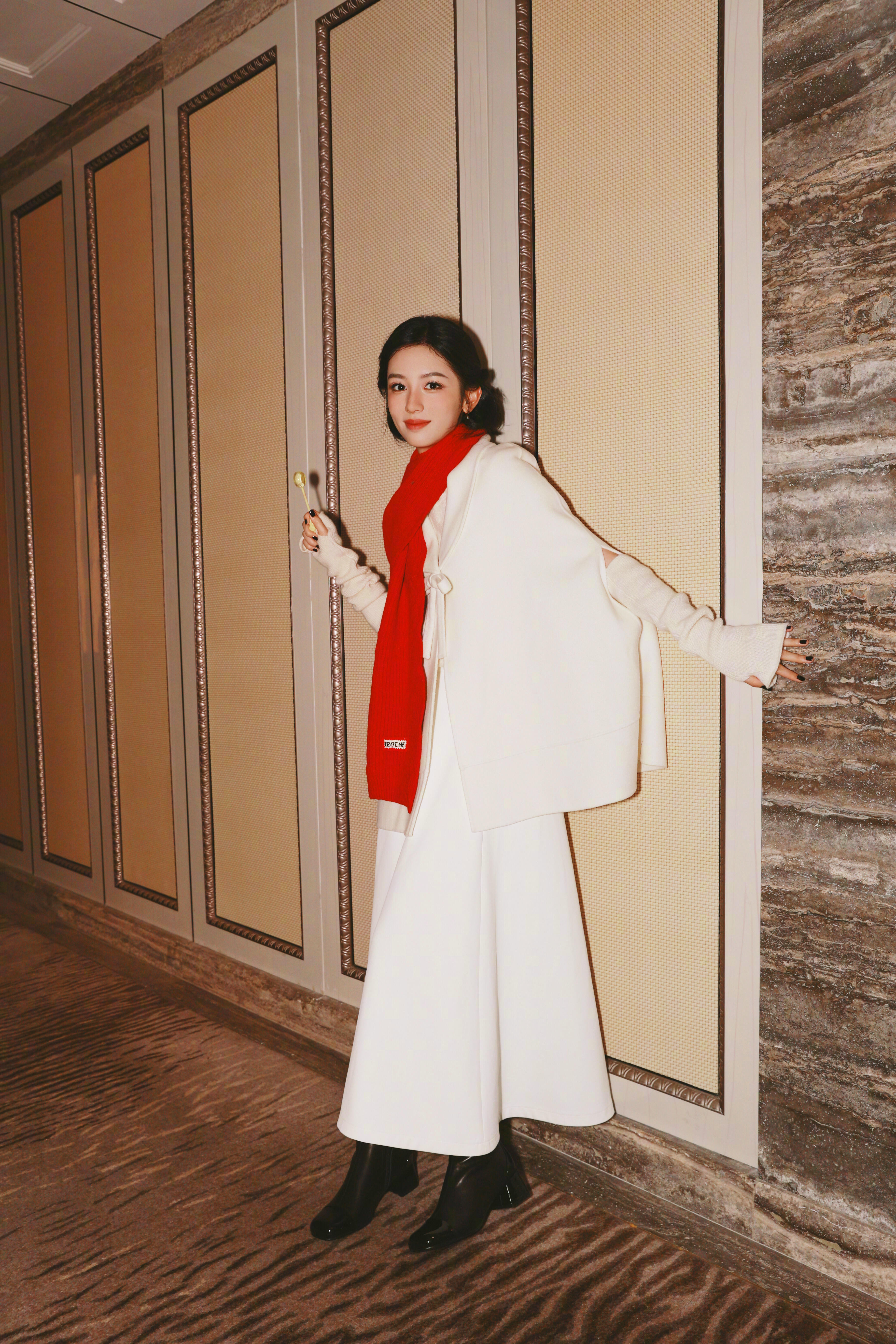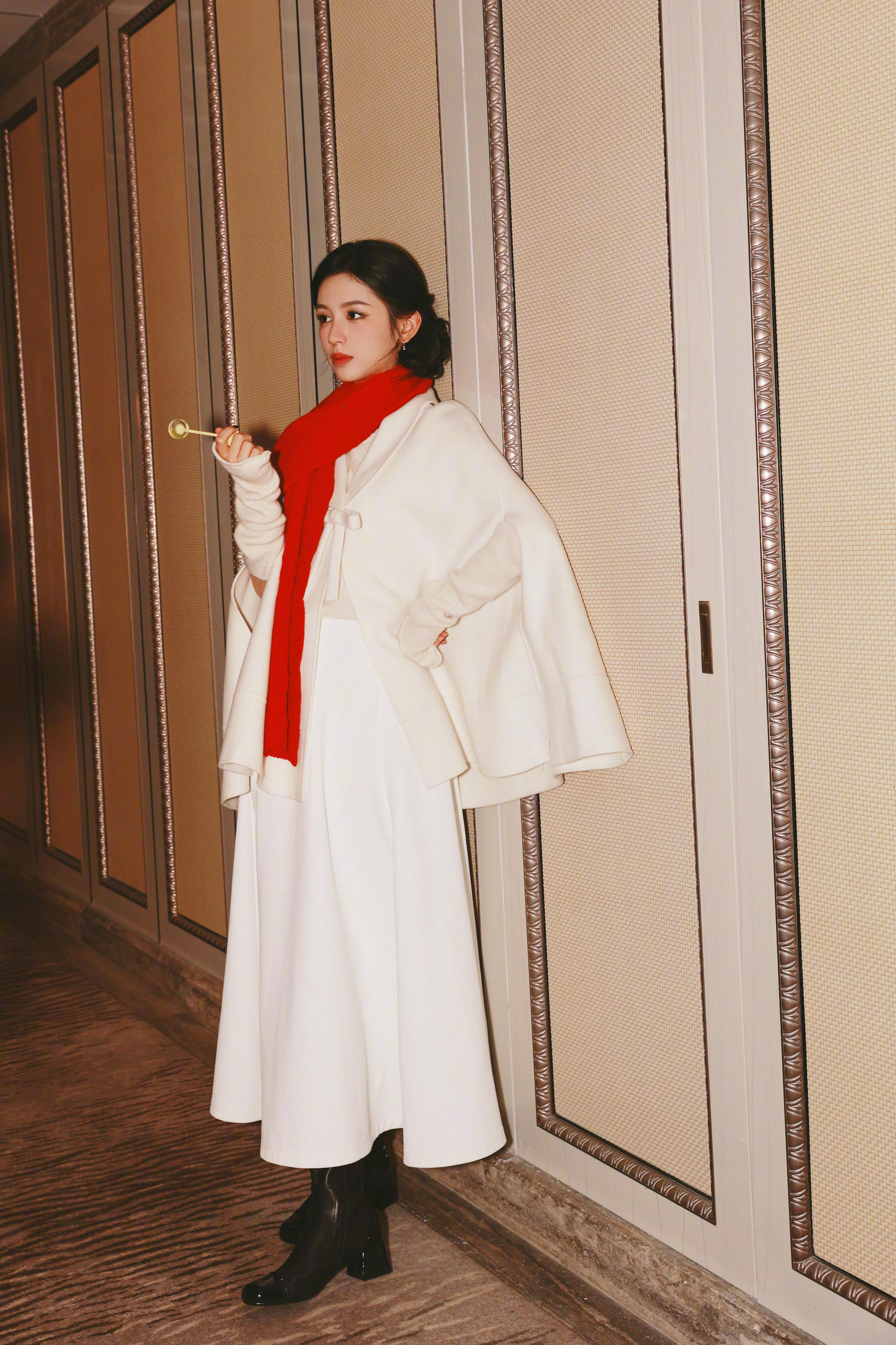 周也云上白雪大小姐的含金量周也今日出席线下活动造型,身着毛呢斗篷外套、针织衫及半身长裙,搭配红色围巾和袖套,把PANTONE 2026年度代表色穿在身上,温柔贵气感爆棚