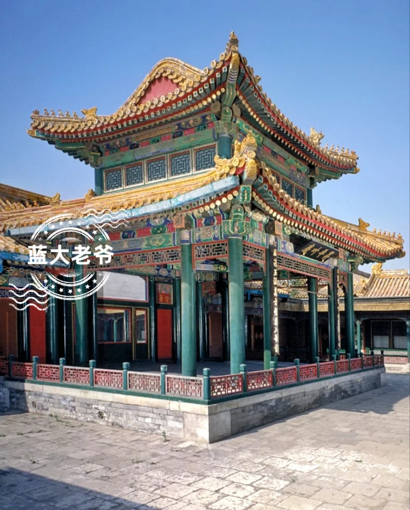 🌅重华宫东院漱芳斋二戏台,为乾隆三年改建西二所时增设,重檐歇山顶大戏台在斋前院,也有天井地井升降系统,为帝在元旦受贺宴臣和封妃看戏所用;小戏台在漱芳斋后殿金昭玉粹西梢间内,得名风雅存匾额,四角攒尖方亭,未申下午茶承应宴戏之用。