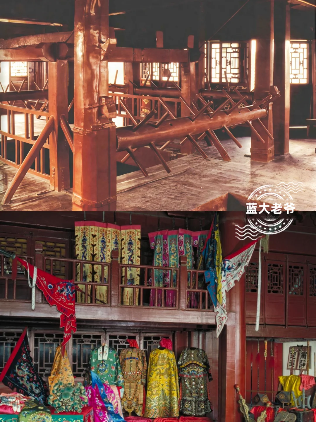 9️⃣修缮后戏台与仙楼上的妇人启门通景画