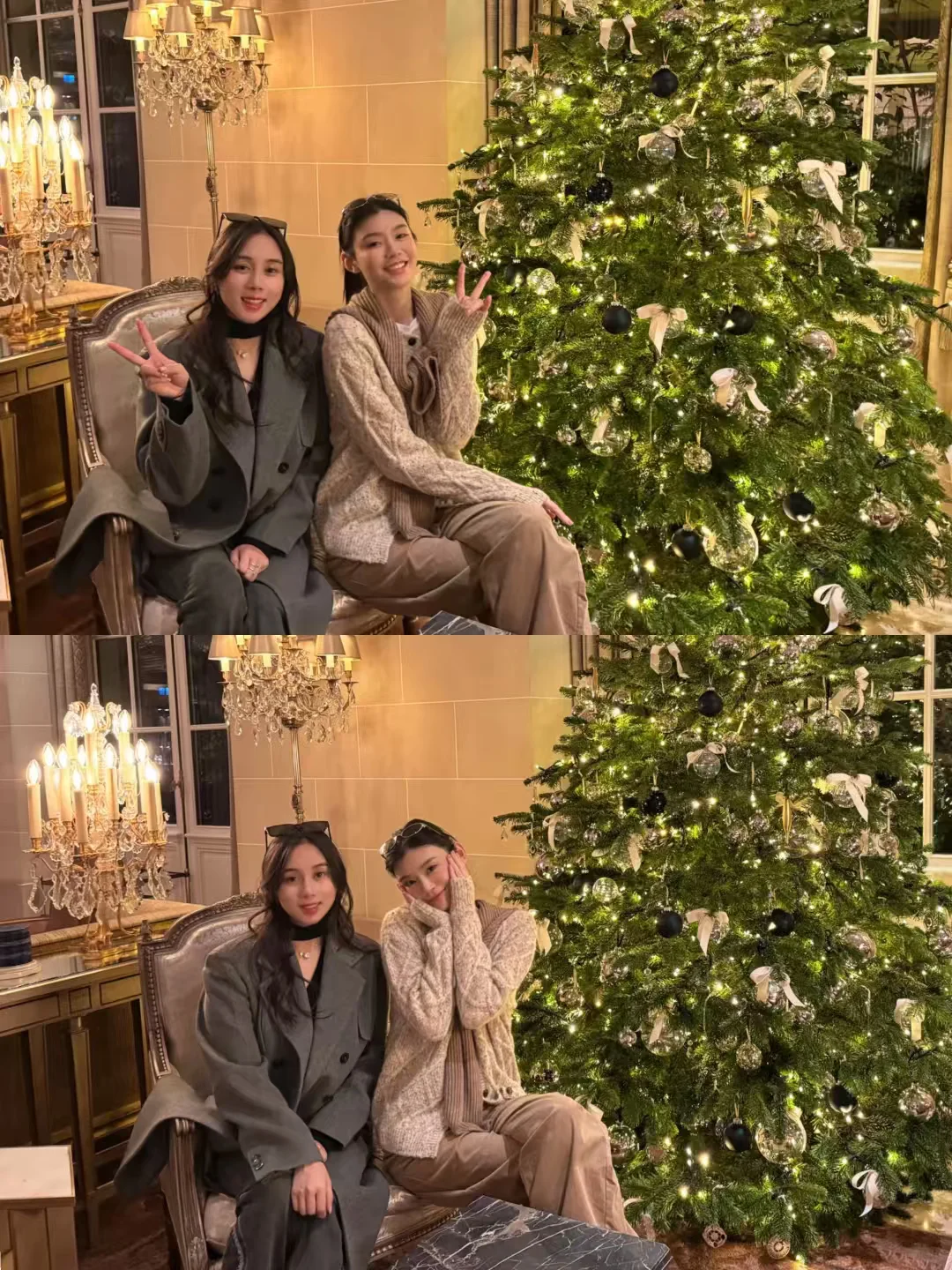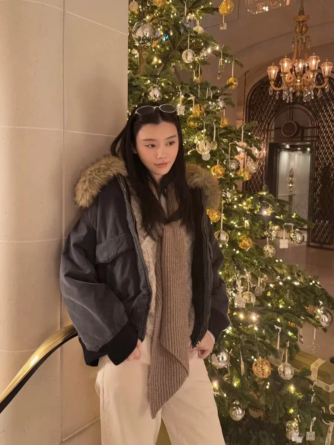 奚梦瑶跟四太过圣诞❗挡不住的超模气质