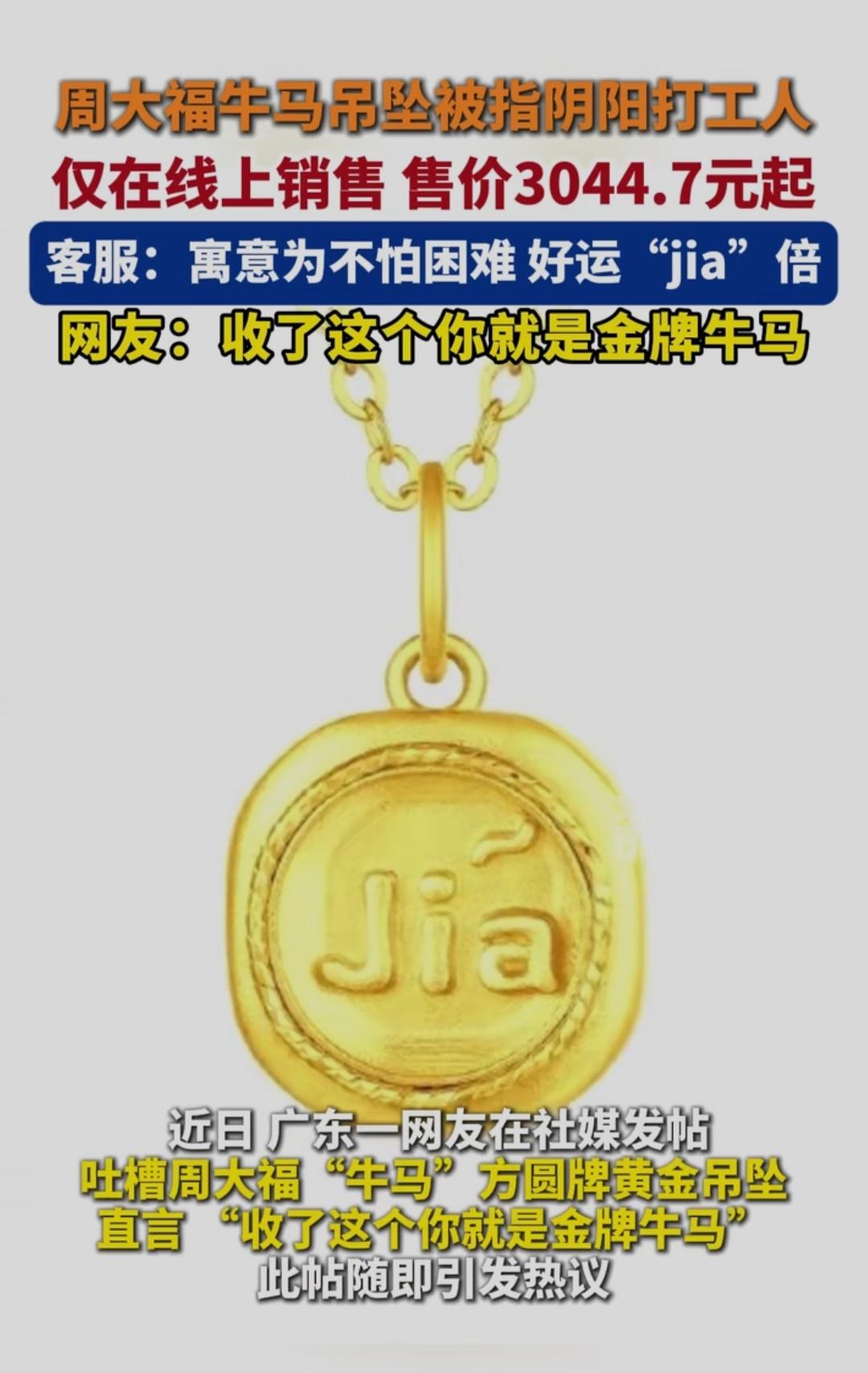 刷到周大福的牛马吊坠时,我盯着屏幕愣了好久——嘴上骂着“这不是内涵我吗”,手却诚实地点开了详情页。客服说寓意不怕困难,可打工人心里门儿清:这哪是祝福,分明是把“逃不掉的牛马命”做成了贴身首饰。 谁没幻想过躺平摆烂?可房租要交、三餐要顾,孩子的学费、父母的养老,哪一样都容不得任性。嘴上喊着“不想当牛马”,身体却很诚实:闹钟一响还是得爬起来挤地铁,领导画的饼再硬也得咽下去,加班到深夜也只能在朋友圈发句“今晚月色真美”变相吐槽。 我们总想着“等攒够钱就辞职”“等熬过这段就轻松了”,可生活的难题从来没断过。这吊坠就像一面镜子,照出每个成年人的无奈:不是不想挣脱,是肩上的责任、生活的枷锁,让我们终究成了自己曾经吐槽的“牛马”。