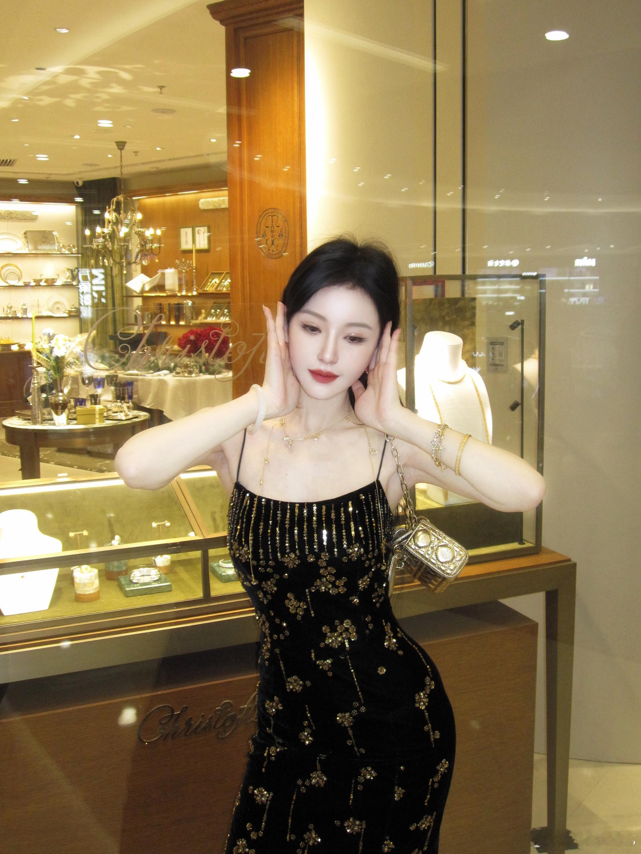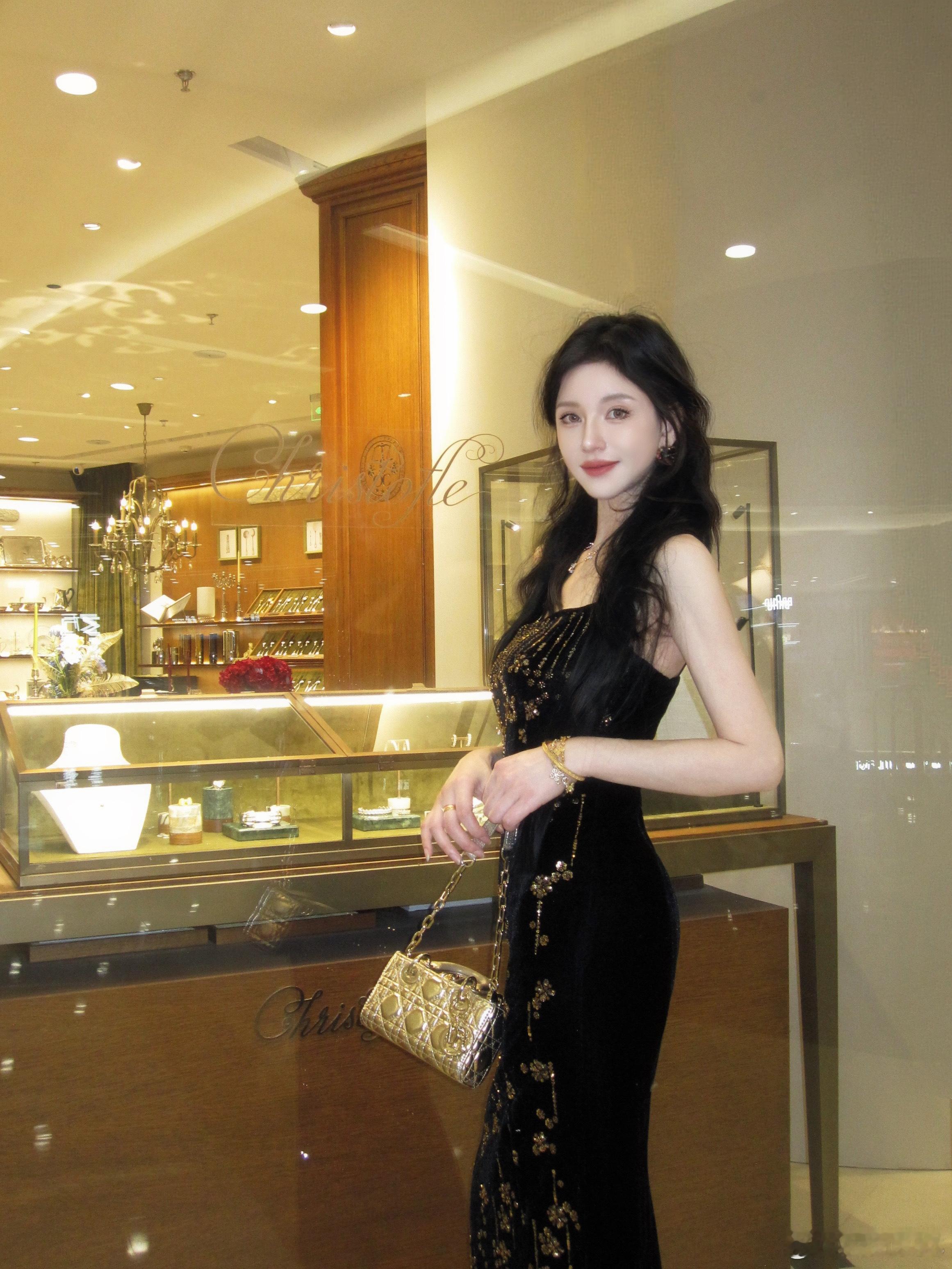 𝑴𝑶𝑺𝑺 𝟏𝟐.𝟐𝟗/𝟐𝟎:𝟎𝟎𝒑𝒎【墨鎏金枝】◼️✨新中式重工珠绣丝绒珠绣吊带连衣裙吊带设计简约利落,细肩带贴合肩颈线条,裙身采用修身微曳版型💅🏽腰腹处自然收窄,裙摆垂坠至脚踝,既能修饰身材比例,同时也展现出优越的身体曲线。丝绒的垂坠感与珠绣的精致感完美平衡,裙子采用隐拉设计,方便穿脱的同时也不影响外观,极具实用性👍新中式穿搭质感穿搭