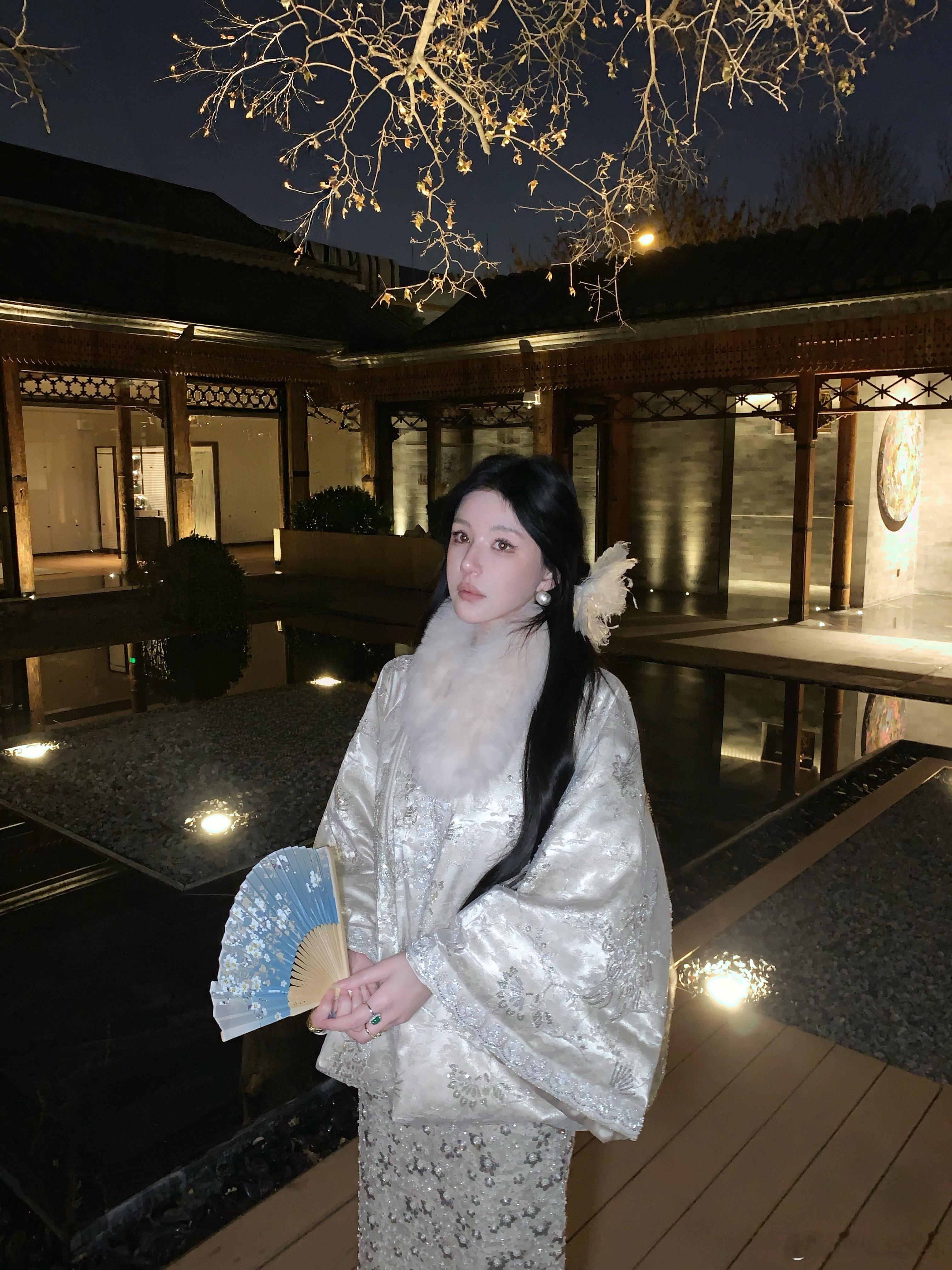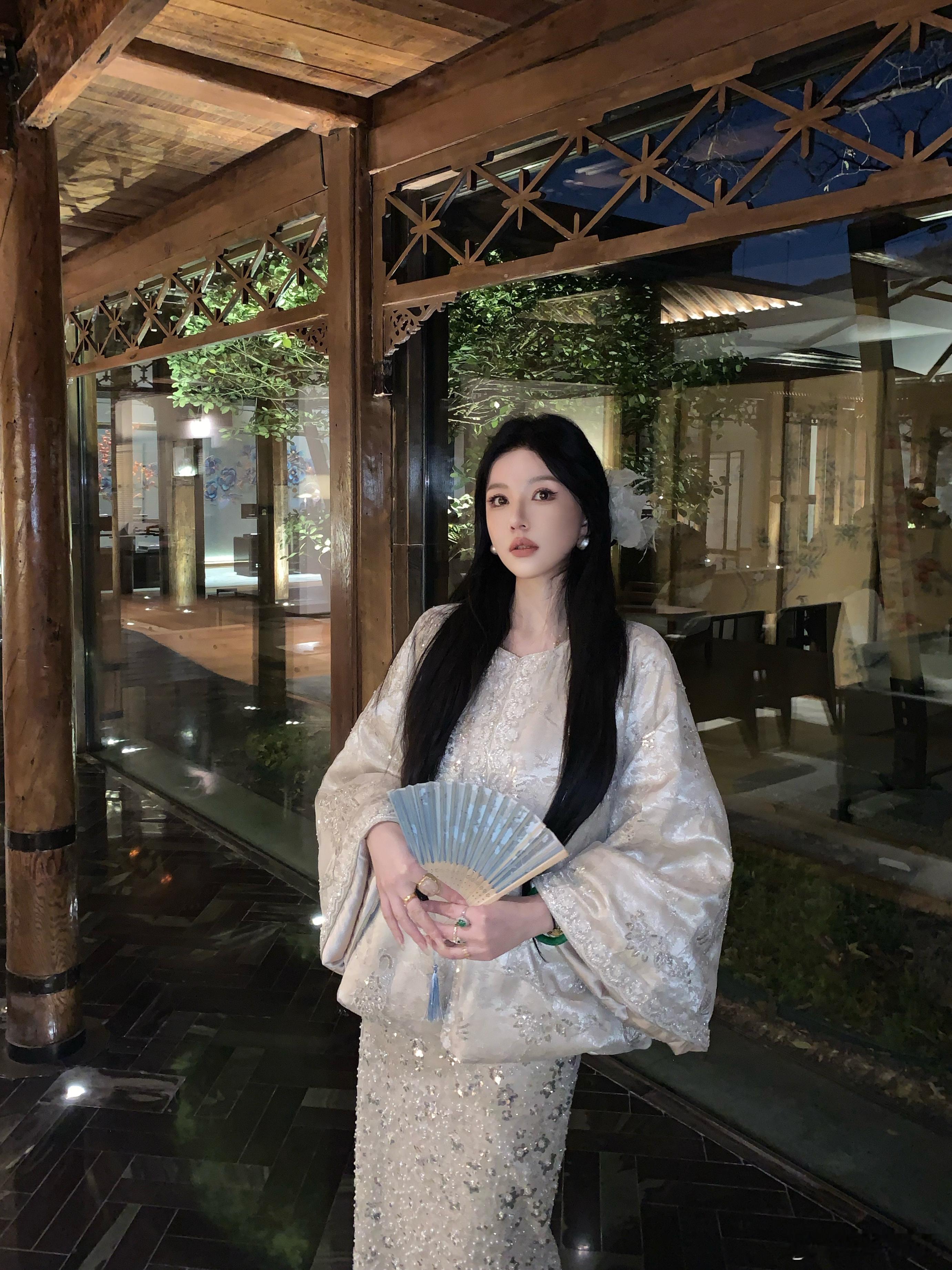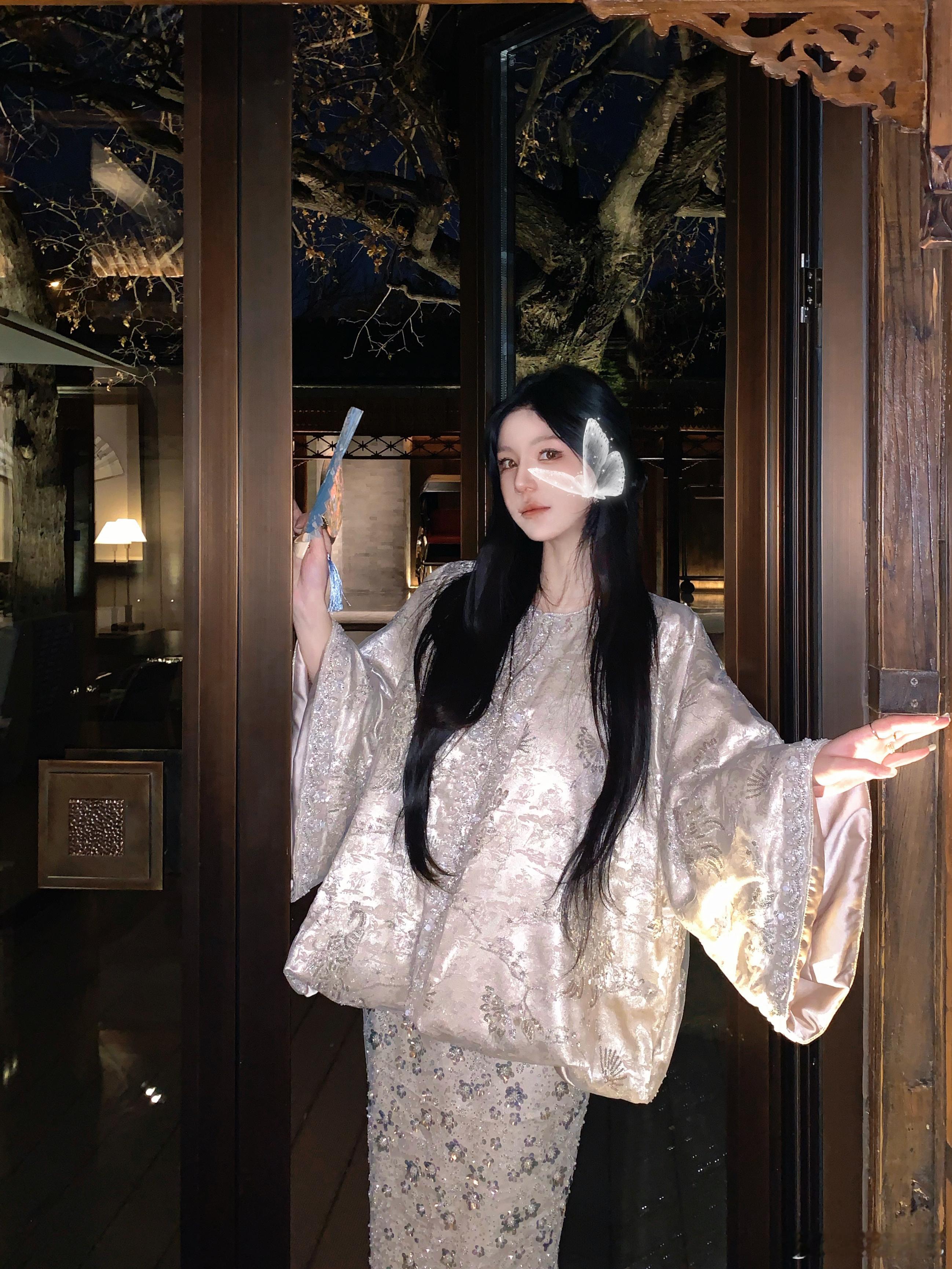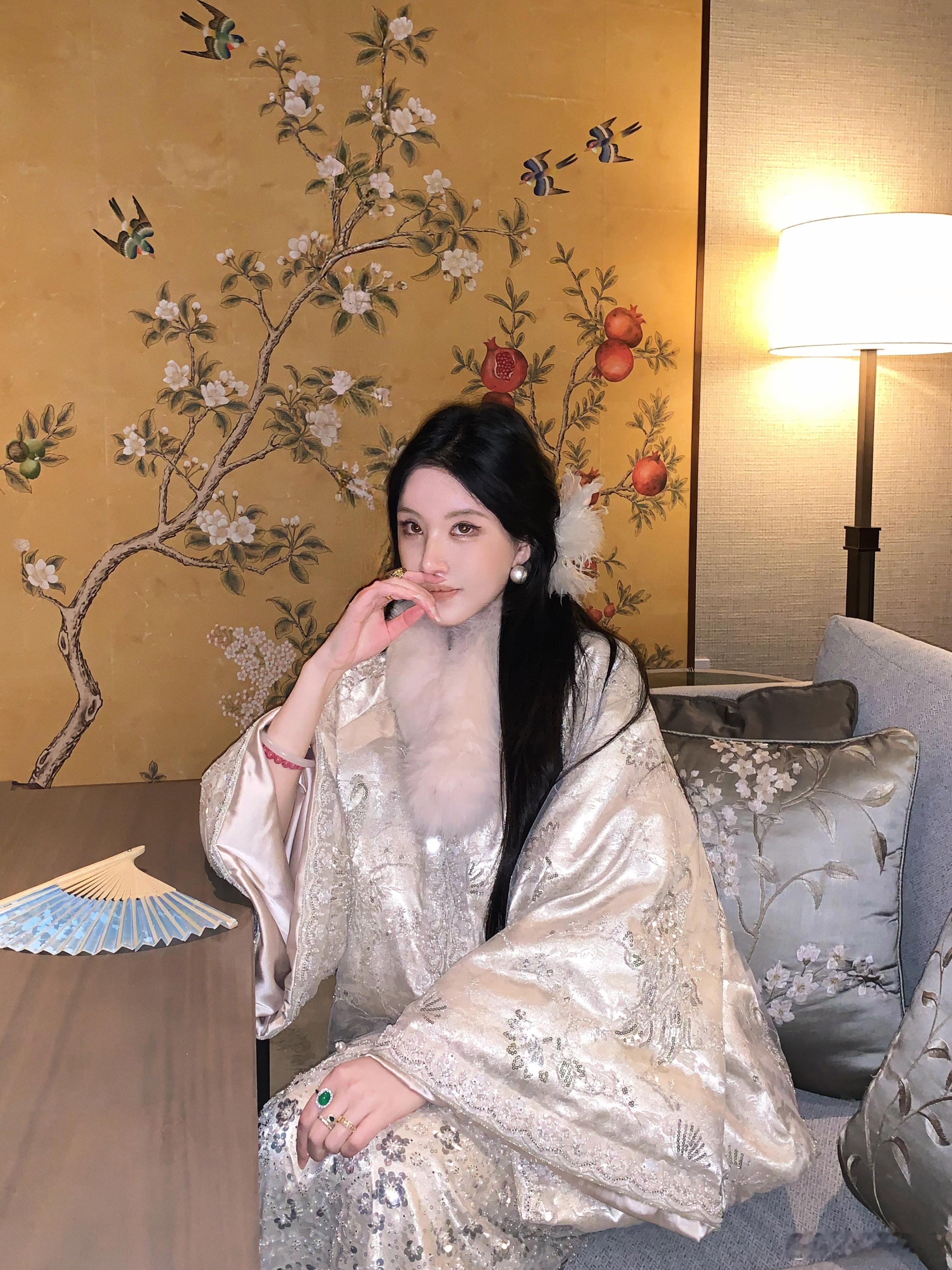 𝑴𝑶𝑺𝑺 𝟏𝟐.𝟐𝟗/𝟐𝟎:𝟎𝟎𝒑𝒎【珠玉】🫧🫧重工亮片绣织带羽绒服外套+网纱提花半裙外套衣服采用双层面料设计,外层重工亮片绣网纱🪡内里填充的足量羽绒🪶为身体构筑起温暖的屏障,在寒冷时节给予贴心守护,门襟袖口的重工亮片珠管绣花织带的加入,珠管与亮片✨交织出繁美纹样,为整体注入层次细节,采用亮银色花片珠扣,与织带完美融合。半裙裙身采用双层设计,外层花朵亮片珍珠网面料如星河流淌,每一颗亮片✨与珍珠都似匠人手工镶嵌的珠宝,在珍珠米色基底上勾勒出繁美花型,内层中式提花面料则暗藏古韵,提花纹样典雅含蓄,与外层的璀璨形成“外繁内简”的层次对比,尽显设计巧思。半裙的采用隐拉设计,方便穿脱的同时也不影响外观,极具实用性。新中式穿搭质感穿搭