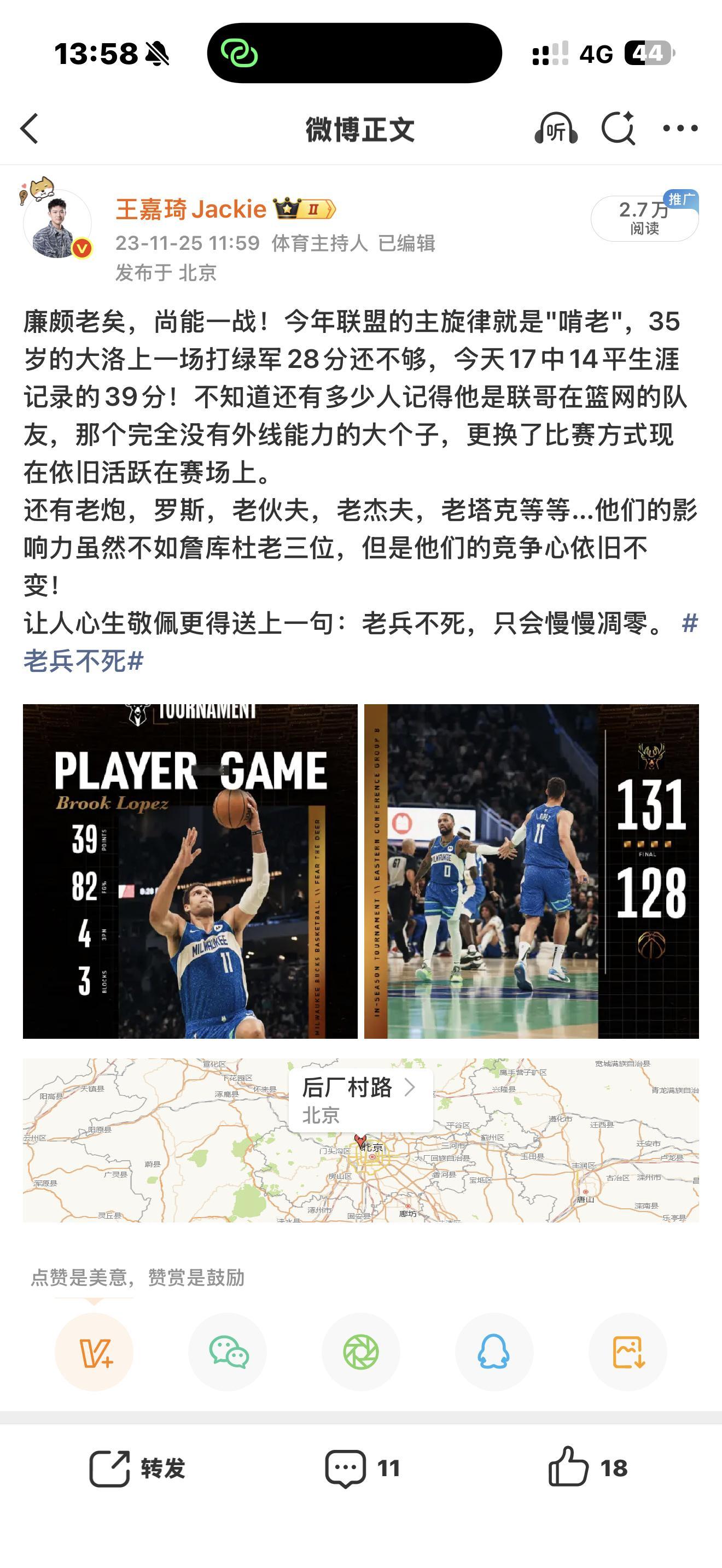 苍老的剑客最后的绝招不是敏捷而是熟练。洛杉矶快船 37周岁即将年满38周岁的大洛用创生涯记录的单场9个三分改变了比赛,也改变了快船的比赛逻辑。他不单单是得分,更重要是让哈登小卡有了更好的空间,也让邓恩柯林斯打的更舒服。但是今天也是感慨上一次大洛的30+还是两年前,那场比赛也正好是我说的,现在他其实还是一样的努力…他还是曾经的那个愿意打破舒适圈愿意提升自己的大个子。加油年迈的水手,加油老兵们! 北京·腾讯北京总部大楼