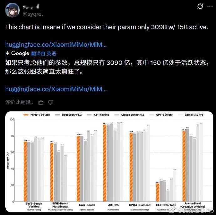 最近小米的大模型 MiMo-V2-Flash 在海外开发者社区还挺火的不少国外开发者已经把 MiMo-V2-Flash 当成 Gemini 3 Flash 的性价比替代方案了,因为它在代码能力表现不错的前提下,API 定价只有同级主流模型的 2.5%,而且现在还依然是限时免费。对开发者来说,等于多了一个性能不错、成本极低的新选择。