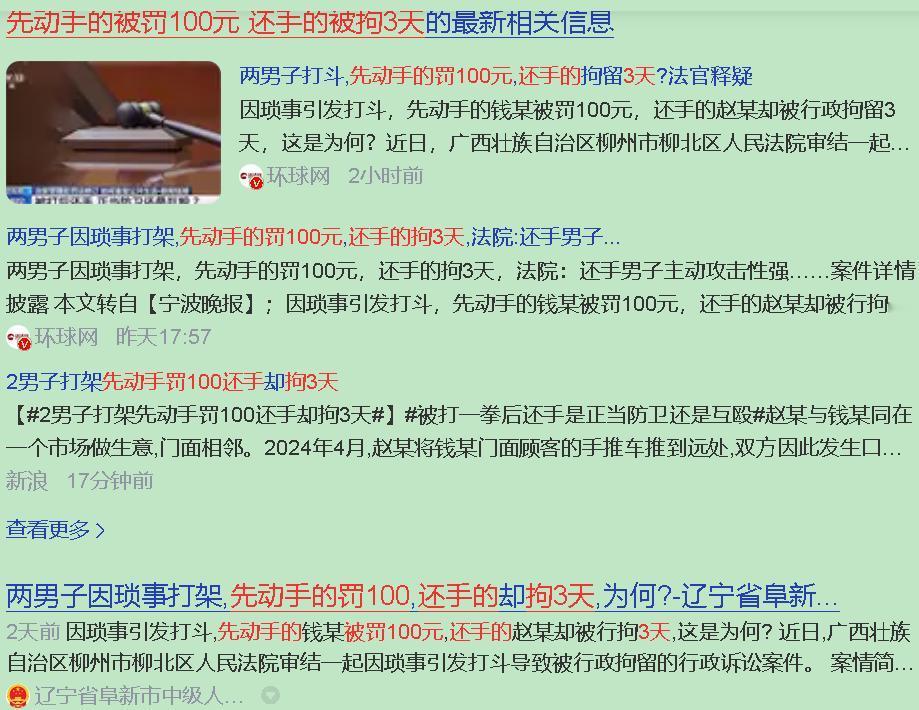 “先动手的只罚一百,还手的反而拘留三天?这法律是不是疯了?” 先别急着拍案而起