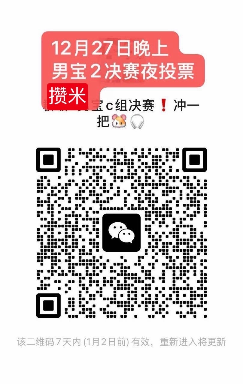 ‼️决赛之夜男宝c组投票正式开始‼️只要是李河民粉丝就进 /vx在下图📢进去看通知投谁,没进的相互通知一下!!!⚠️投完票截图票根到指定的接龙程序接龙截图,投了多少截图多少放多少,后期通过接龙票数算米,不能让米白白流失!(接龙码在群内)这是近期最后一次大额赚米攒中输的机会,过完今天能不能有其他大额活动找上门全靠今晚,把我们卷丝人头多执行力强的口碑要打出去👏🏻👏🏻👏🏻已经在开始投票了,通过自动弹出广告点进去增加投票倍数。时间不等人,迅速拉人+借助亲朋好友的📮开做,多一个人多一张票多一份对任务完成的胜算。⚠️老板们很信任我们所以给的目标很高,我们要对得起老板的信任,突破这次大体量目标。