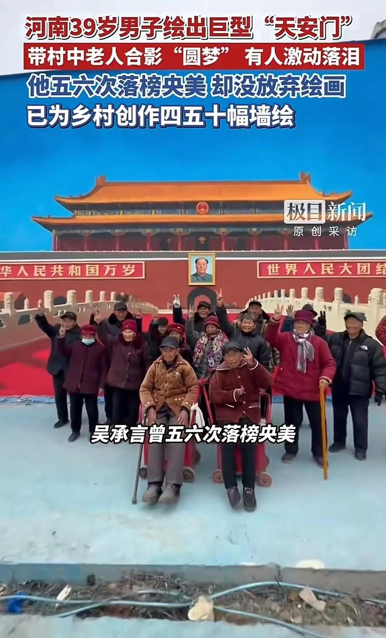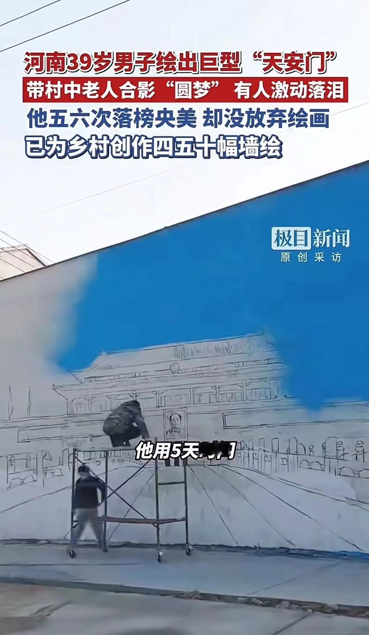 男子把天安门“搬”到村里,轰动全村!河南,村里的老人们有个心愿,就是在天安门前拍张照片。但是机票和住宿的费用他们根本不舍得,而村里一个39岁的男子,为了实现老人们的愿望,在村里绘出一个巨型“天安门”! 这个故事,像极了一面镜子,映照出我们这个时代的温情与责任。或许有人会说,这不过是一幅画,一个“假”天安门,能带来什么真正的温暖?但细细想来,这正是那个普通男子用行动书写的最温暖的人性篇章。没有惊天动地的豪言壮语,也没有高昂的宣传声,却用一幅画,唤醒了村里老人们久违的笑容和那些被尘封的记忆。 在这个快节奏、物欲横流的社会,很多人似乎忘记了最初的梦想:那份对生活的热爱和对家人的关怀。而这个男子的“小小行动”,却像是一股清流,提醒我们:真正的幸福,从来不是金钱堆砌的豪华,而是心中那份真诚和善良的火热。 他用画笔,用心,绘出了一个“天安门”,不仅仅是一个景象,更是一份希望,一份对美好生活的向往。老人们站在“天安门”前,仿佛穿越时空,回到那个激动人心的历史瞬间,那一刻,他们的笑容比任何奖杯都珍贵。这不仅仅是一个村庄的奇迹,更是一面镜子,映射出我们每个人心中那份对梦想和温暖的渴望。 或许,你我都曾在忙碌中迷失过,忘记了那些简单而纯粹的幸福。而这个男子用行动告诉我们:只要心中有爱,哪怕是最平凡的日子,也能变得光彩夺目。我们是否也应该学会,用一颗善良的心,为身边的人点亮一盏希望的灯? 这个故事,激励我们:不要小看任何一个普通人的善举,因为每一份善意,都是点亮社会的那一束光。而当我们看到那巨大的“天安门”在乡村绽放,或许会明白:爱与温暖,从未远离,只要我们用心去感受、去行动。 让我们为这份温暖点赞,也希望每一个普通人都能成为那个用行动改变世界的“男子”,在平凡中创造不平凡的奇迹。因为,最美的风景,永远是人心最柔软的地方。天安门 天安门照片 北京天安门 天安门观景台 中国天安门广场 天安门路线 广场天安门