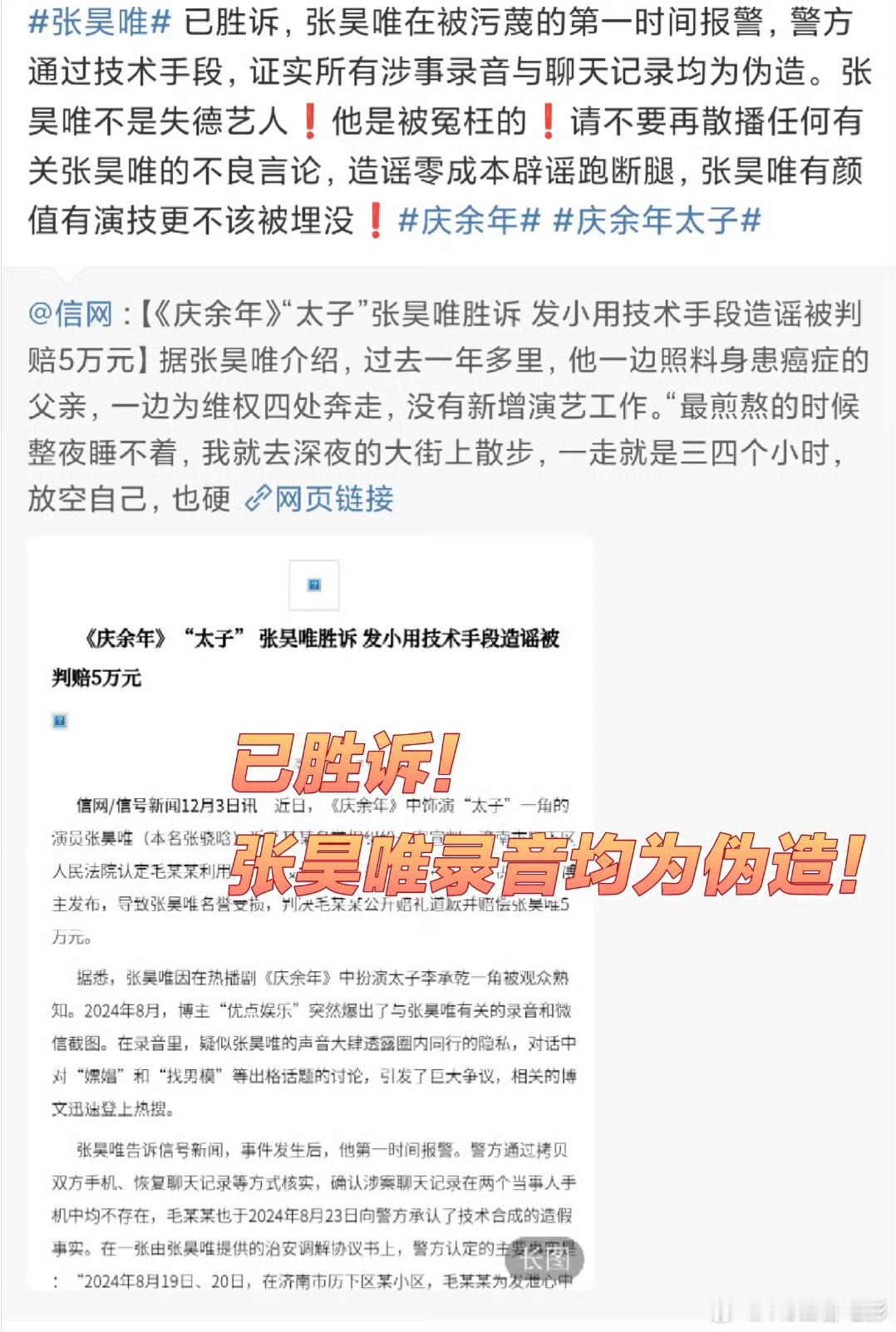 张昊唯回应胜诉张昊唯的微博账号自从录音事件之后,除了一条国庆祝福微博就再也没发过
