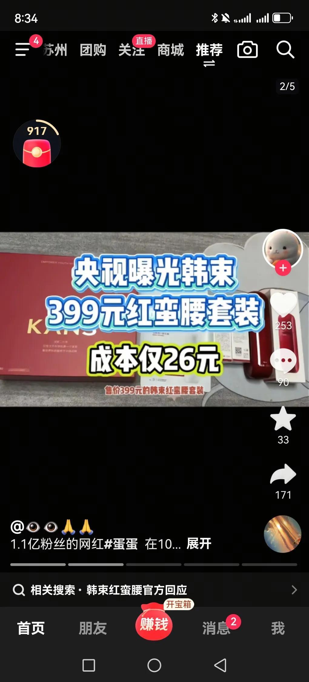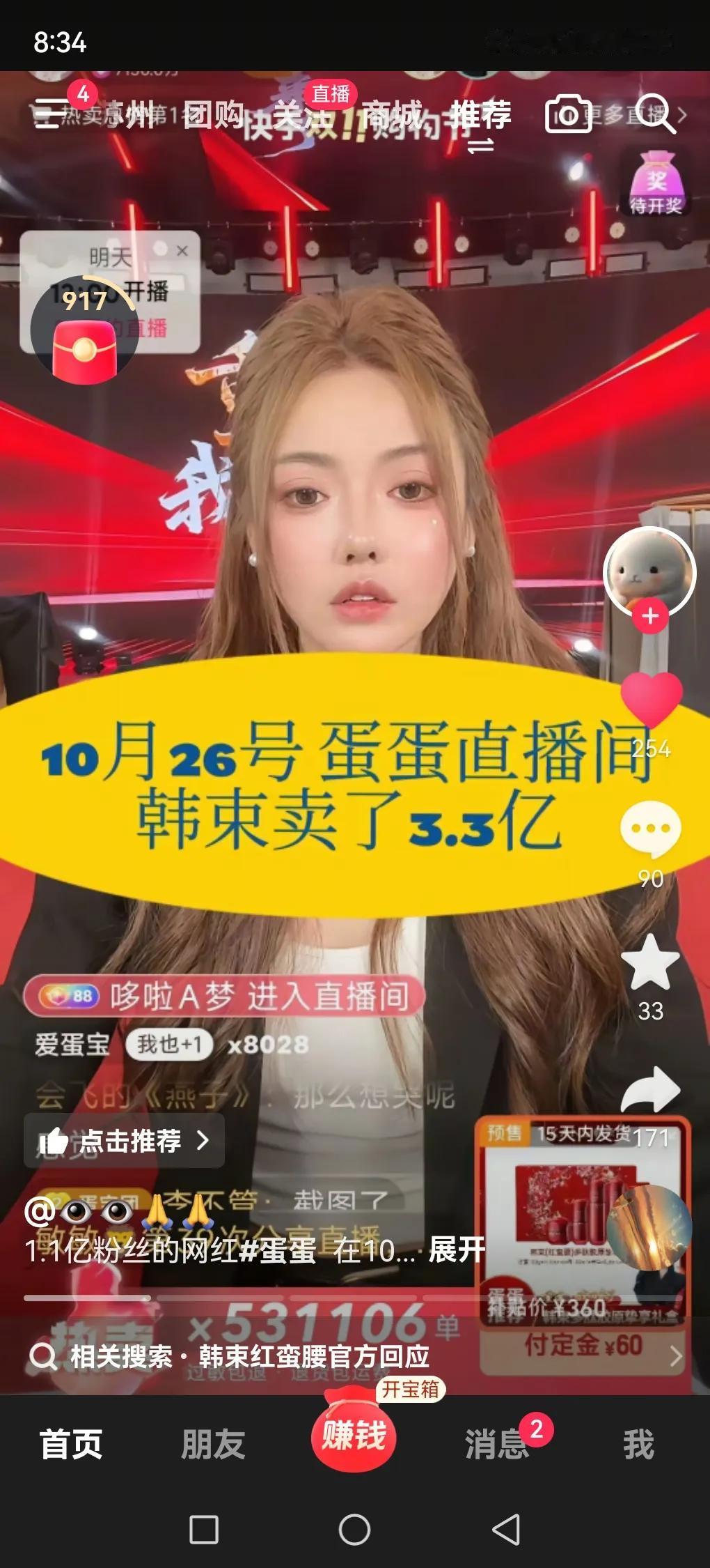 10月26号,蛋蛋直播间卖韩束卖了3.3亿,央视曝光399元的红蛮腰套装成本仅26元,真的令人啧舌,现在的化妆品真的是暴利!坑的全是女性人群,蛋蛋号称产品不赚钱利润低也真的虚伪,还有部分特别聪明网友发现,蛋蛋还是属于辛巴的,蛋蛋是辛巴派出来的棋子,现在蛋蛋接替的是老葛位置,和辛巴是敌人,大家都知道老葛是蹭辛巴热度起来的,那些恨辛巴的都去老葛那买货,辛巴当时就很难受,有可能想到的办法就是让蛋蛋假装出去当“叛徒”,实际上是接替老葛位置,这一招真的妙,实际上老辛巴和蛋蛋伽柏都是一家人都是一派,不得不说辛巴是真聪明。