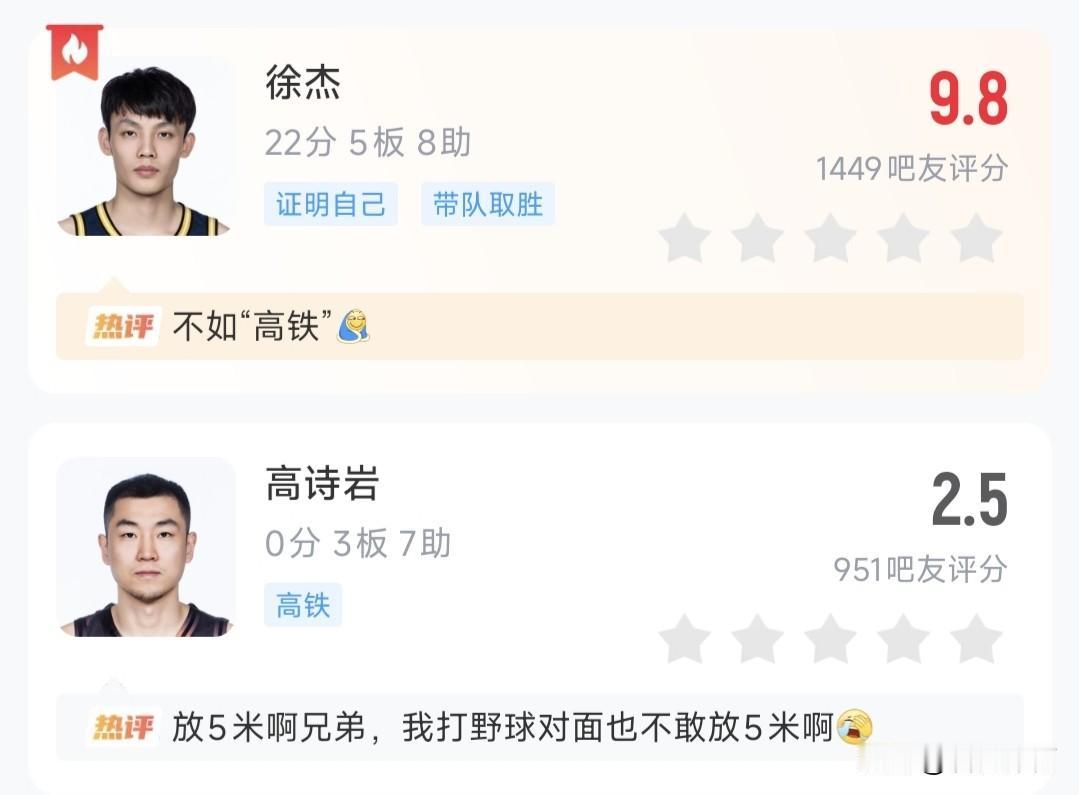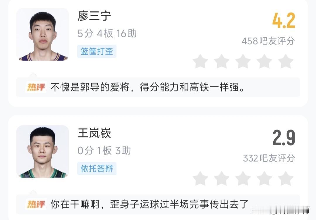 都不愿意看到高诗岩拿0分“一枝独秀”吗?王岚嵚、张镇麟两位国手,就站了出来也拿0分? 国家队名单上就12个人,这连着3个国手都拿了0分,真不怪打韩国队时,进攻磕磕绊绊的,没一个人能站出来得分。 还有另一位国手廖三宁,今晚表现同样出色,以14投2中的“超高命中率”拿下5分。 也难怪徐杰入选不了国家队,你一人得分比国家队四位球员加起来都多,这不是在破坏球队平衡与团结吗?