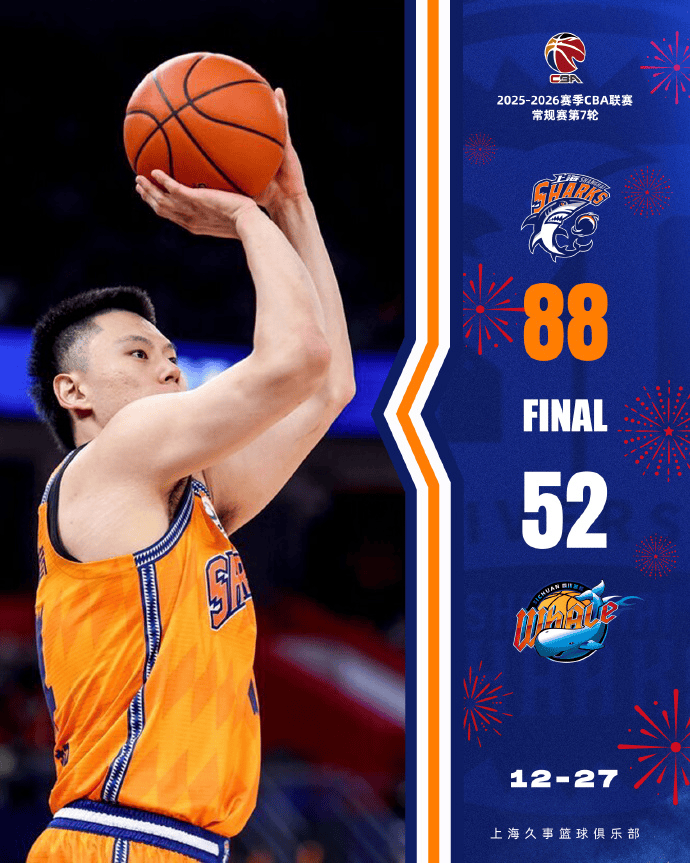 虎扑12月27日讯CBA常规赛,上海88-52战胜四川。