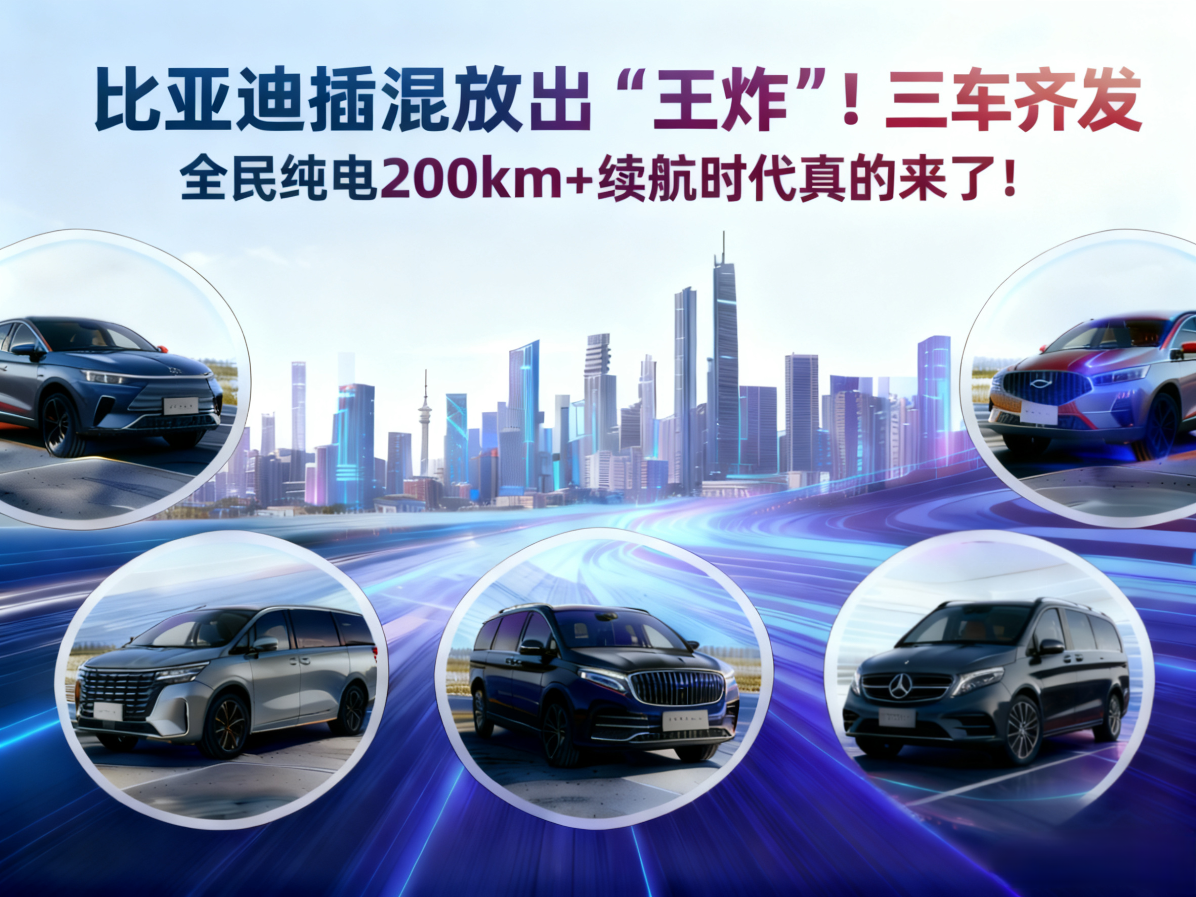 比亚迪插混放出“王炸”!三车齐发,全民纯电200km+续航时代来了