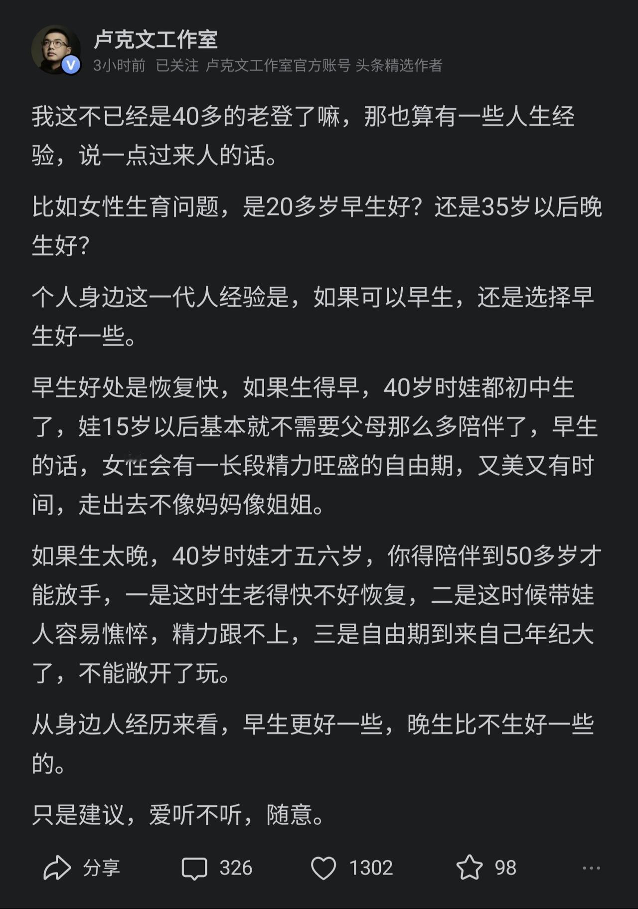 今天怎么回事?大V@九边Pro 和大V@卢克文工作室 分别都称自己为老登?两人一时瑜亮,未见过互动,但是常见粉丝却纷纷站队互撕。 这次两人都自称老登,但是话题不一样,卢克文讨论的是女子生育年龄问题,九边讨论的控制体重和指数定投的问题。 两个人来说,我其实更喜欢九边,因为他确确实实给了我们普通人很多中肯的建议,也没有割粉丝韭菜。 喜欢卢克文的视频,因为很能提气,也确实把很多问题分析的很清楚,但是他已经开始做起粉丝经济卖酒了。虽然不能说不对,但是跟九边比起来还是差了一点意思。