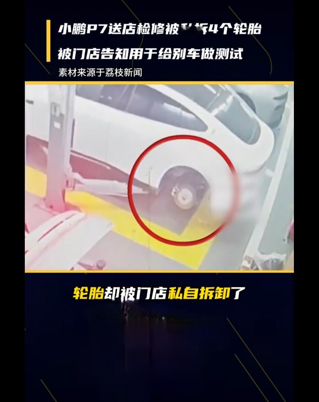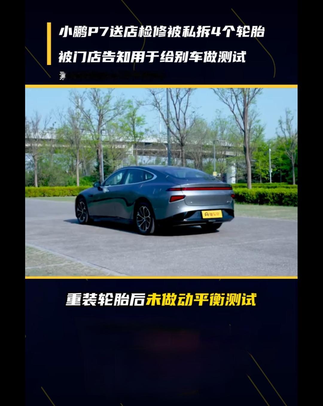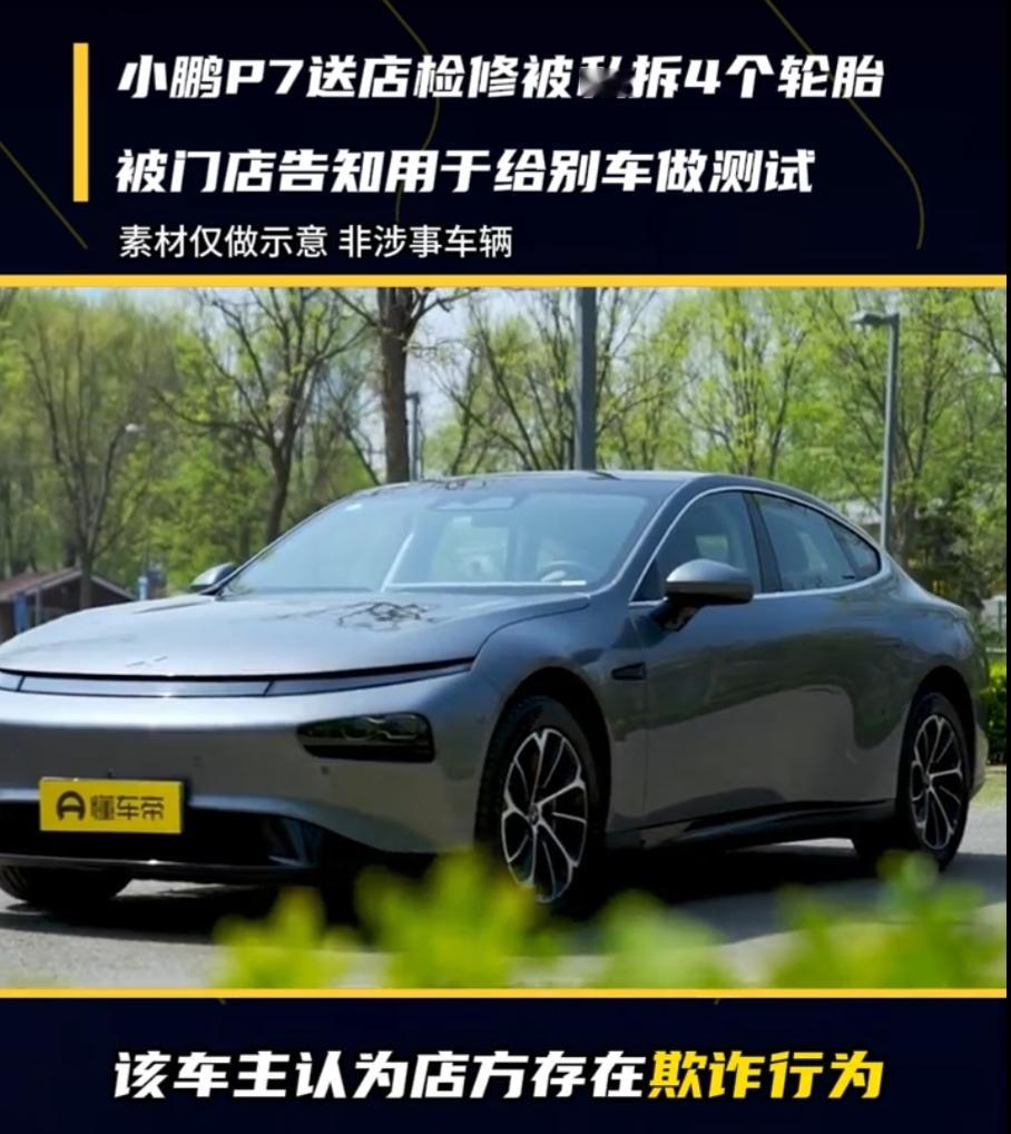 把车开进4S店维修,结果被人家把轮胎拆了,用来给其他车做测试,离谱不?我觉得离了大谱,但这却真实的发生在小鹏P7车主身上了,这种事情发生在谁身上都有点接受不了。