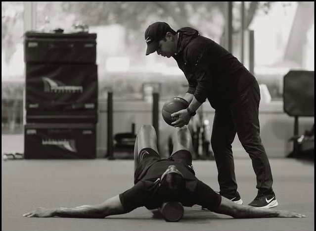 回过头翻照片,才发现彪哥夏天的康复训练,是由老詹的私人训练师迈克辅助指导的。(这个MMVP机构是今年成立的,初始创办人之一就是迈克)范德比尔特