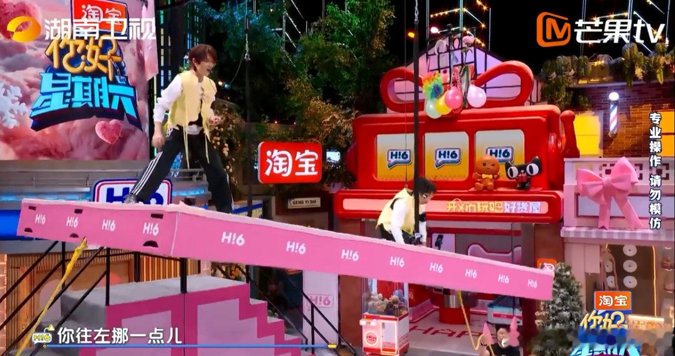 杨迪好像第一天在马戏团工作的NPC恐高的杨迪硬刚高空平衡板,戴上道具后,妥妥马戏团新入职打工仔 NPC 既视感你好星期六