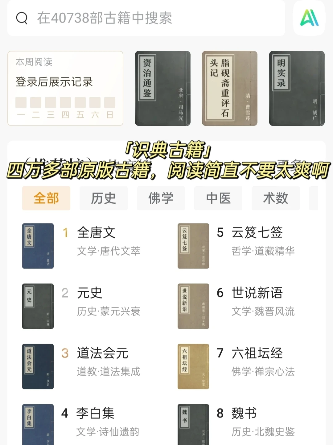 这一恍惚已是多年,我几乎要认定自己是个见史便怵的人了。直到遇见“识典古籍”,才感觉有救——原来读史也能令我兴致盎然。
