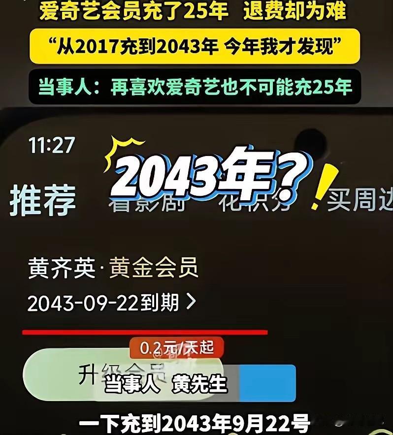 河南许昌,男子在家无聊追剧,偶然发现爱奇艺会员要到2043年到期,后来一问家人才知道,原来当时家人一次性充值了25年的会员,男子吐槽:房贷才30年,干嘛给它充25年,可要求退费时,却遇到了难题,不是平台不给退,而是退到哪发生了分歧 客服坚持,钱只能原路退回,退到当初付钱的账户里!这下黄先生犯了难。当初充值用的是家人的支付宝账号,那个账号早就不用了,而且被别人注册 25年的会员时长,比不少人的房贷周期都短不了多少。家人这波操作,属实把超前消费玩出了新高度。 平台的原路退回规则,听起来合规又严谨,可落到实处,却成了卡人的条条框框。规则不该是死的,得有人情味。 那个被别人注册的支付宝账号,如今成了退款路上的拦路虎。黄先生就算拿出充值凭证,也只能干瞪眼。 谁能想到,一次冲动的充值,会埋下这么大的隐患。25年的时间跨度,足够让一个账号彻底物是人非。 平台死守原路退回的规定,无非是怕担责、怕麻烦。可消费者的权益,不该被这样的死板规则架空。 类似的退费纠纷不在少数,充值时有多爽快,退费就有多闹心。平台的服务,从来都该有来有回。 黄先生的遭遇,像一面镜子,照出了会员充值背后的消费陷阱。冲动充值容易,理性退费太难。 这件事也给所有人提了个醒,再划算的长期充值,都得留个心眼,谁知道十几年后的账号会是什么样。 规则是用来保障双方权益的,不是用来刁难消费者的。平台真该好好想想,怎么把服务做到实处。 各位读者你们怎么看?欢迎在评论区讨论。