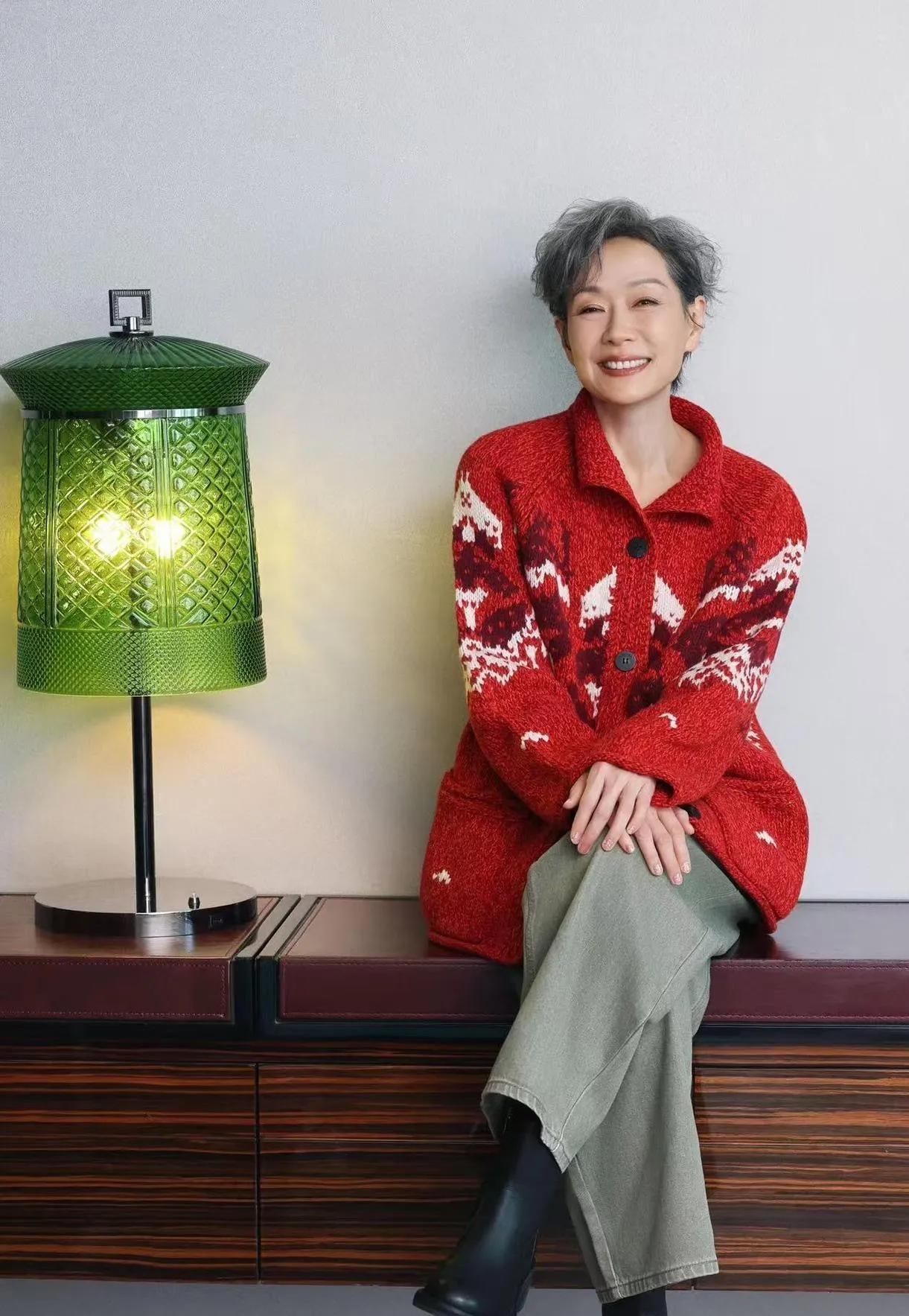 叶童的老年穿搭,红毛衣配阔腿裤太惊艳 叶童这组造型真的美到我了!银灰短发搭配红色提花毛衣,明艳又吸睛,下装搭卡其色阔腿裤和黑色短靴,休闲中透着高级感。 一把年纪还能把红配绿的氛围感拿捏得这么到位,不被年龄束缚的时尚感,也太让人佩服了吧!