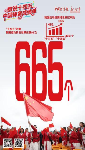 中国体育 "十四五" 交出 665 个世界冠军亮眼答卷!刚刚,国家体育总局正式发布 "十四五" 体育成绩单:中国体育健儿共斩获665 个世界冠军,创68 项世界纪录,交出了一份闪耀国际舞台的亮眼答卷!辉煌战绩速览🏅 665 个世界冠军,平均每2.8 天就有一枚金牌入账,展现中国速度与实力!🔥 2024 年创历史新高,单年斩获194 个世界冠军,覆盖33 个项目,其中奥运项目 84 个,非奥项目 110 个。🌟 巴黎奥运会40 金 27 银 24 铜,与美国并列金牌榜第一,创造境外参赛最好成绩!🏆 北京冬奥会历史性突破,多项比赛刷新纪录,展现中国冰雪运动崛起!金牌背后的故事🏓 国球闪耀乒乓球军团横扫世乒赛、世界杯等顶级赛事,樊振东、孙颖莎、王楚钦等名将频登最高领奖台,国球霸主地位坚如磐石!🏊 泳军崛起"亚洲飞鱼" 潘展乐、跳水女皇陈芋汐等选手在泳池和跳台掀起中国风暴。陈芋汐实现世锦赛 10 米台四连冠,邹敬园四夺世锦赛双杠金牌,彰显中国力量!🥊 多元突破射击、举重、体操、羽毛球等传统强项持续发力,同时自由式小轮车、艺术体操、花样游泳在巴黎奥运会上首次获得奥运金牌,实现项目历史性突破!从体育大国到体育强国"十四五" 期间,我国体育实现三大跨越:✅ 奥运金牌项目由21 个增至 24 个,金牌分布更加均衡✅ 获得金牌的省区市达到20 个,区域发展更加协调✅ 全国人均体育场地面积突破3 平方米,全民健身蓬勃发展未来可期665 个世界冠军不是终点,而是新起点!米兰冬奥会、洛杉矶奥运会已在眼前,中国体育健儿将继续以使命在肩、奋斗有我的姿态,向更高、更快、更强、更团结的目标发起冲击!