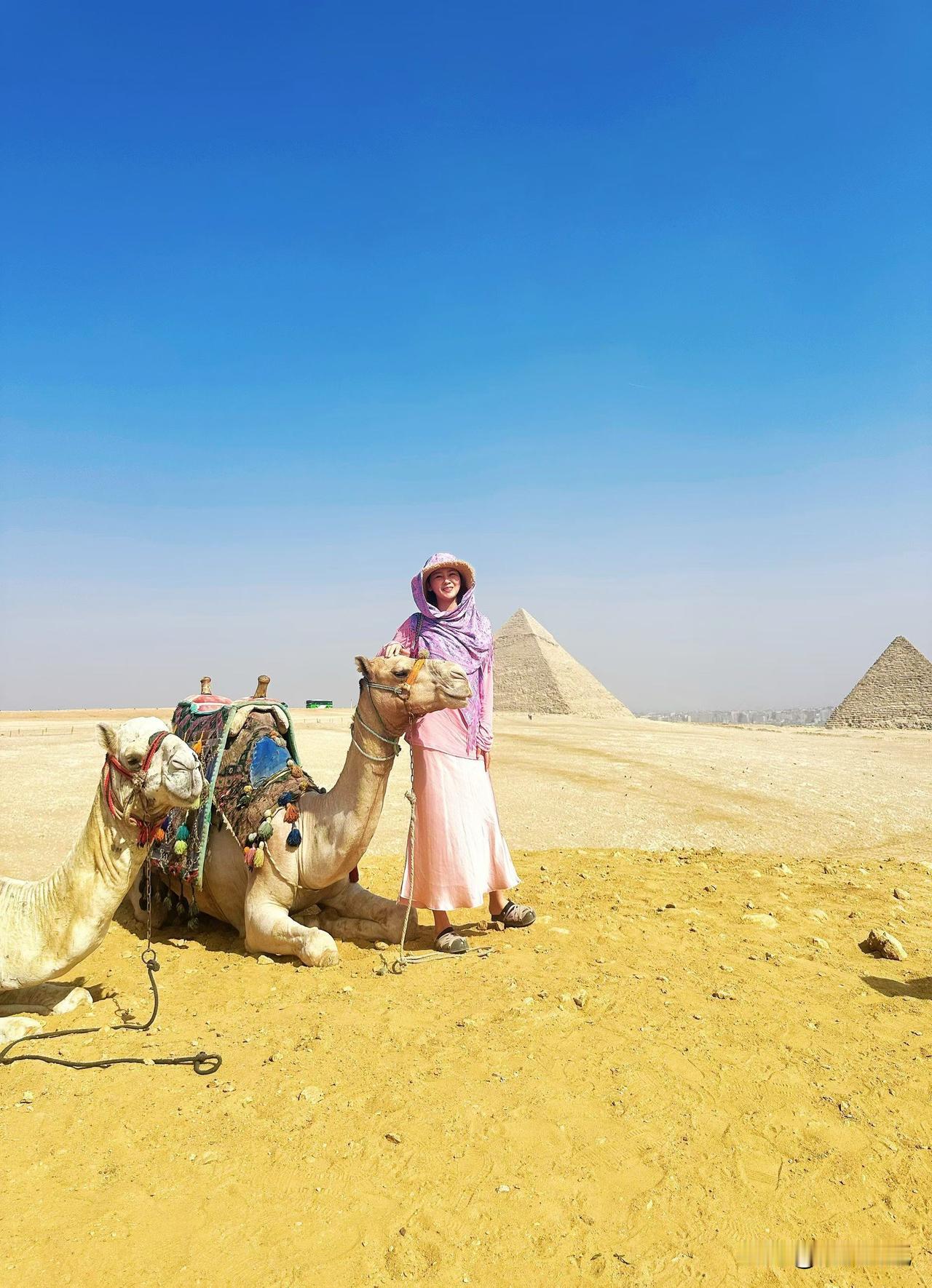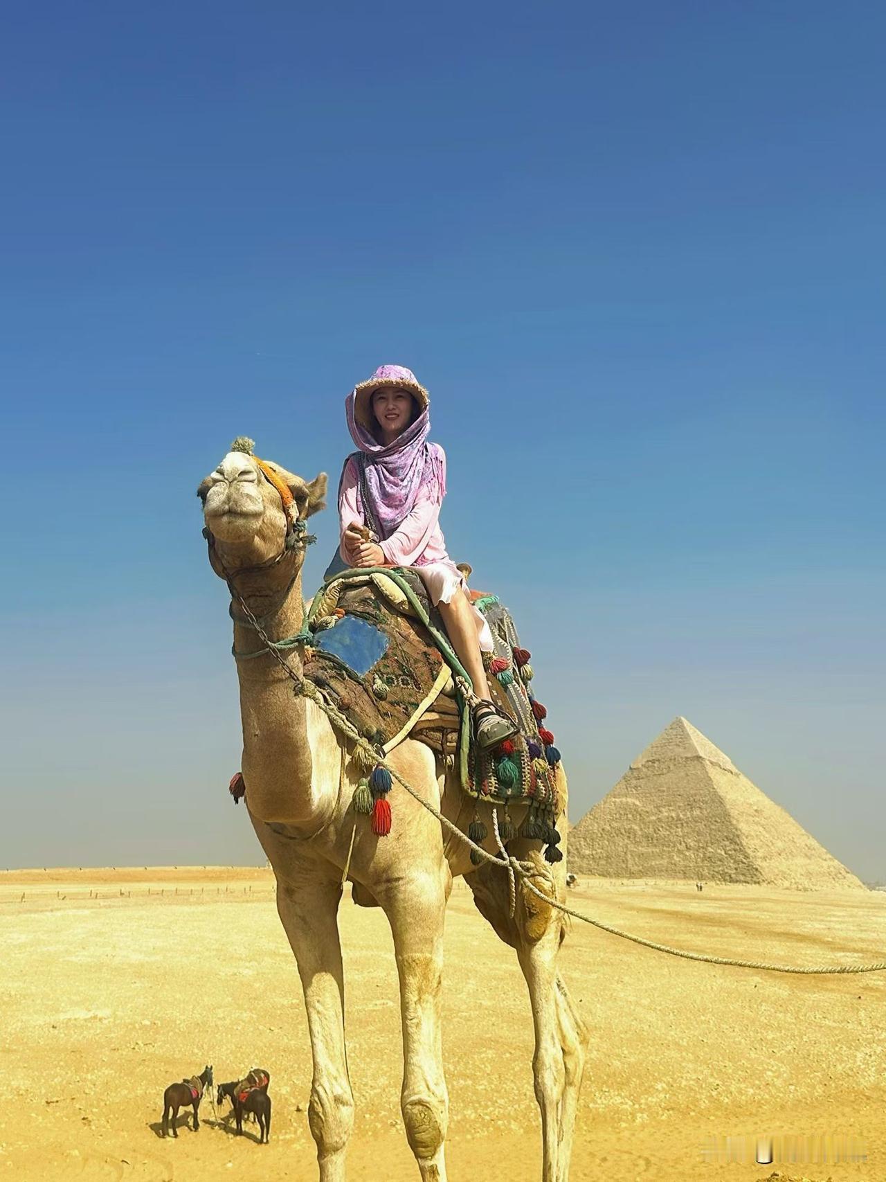 埃及金字塔,我来了! 指尖轻触那被夕阳镀金的巨石,心跳如尼罗河潮涨——三千年风沙扑面,灵魂在这一瞬被永恒吻亮。