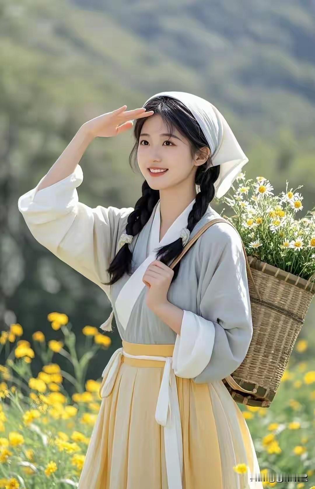 微笑温柔含雅韵, 眼眸藏星映流霞。 东方女神婉约娇, 天生丽质面桃花。