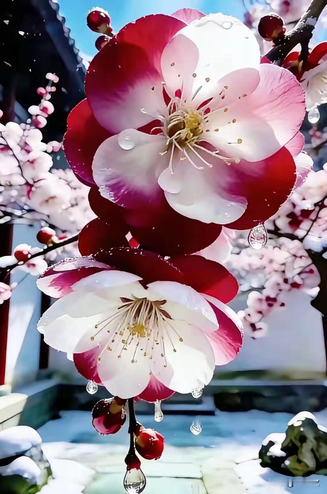 上联:红墙覆雪梅枝俏 下联:琼花飞舞佳人羞