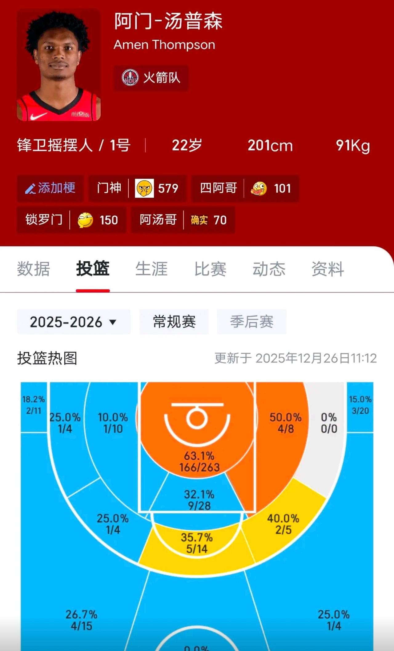 我了个寒冰射手啊,应该削减阿门持球了,正确的球权顺序是谢泼德阿杜申京,最强的三个持球点,小贾也续约了,且38%的三分,可以排第四,阿门就像上赛季一样好好防守,还有没续约的伊森,也只有防守端打好。 阿门和申京的单打是打不死对方的,现代篮球要打死人还得是三分球。。所以我认为阿门如果继续持球攻真的很鸡肋。。。申京应该在高位多发发牌调动队友先打才是王道,总之火箭*这阵容太畸形,防不住就代表大概率不太能赢球。。 阿门连投中投,人家都不防他,他也没有中投水平,场均一个中投都不到,这样的进攻黑洞,加上申京也是,申京的三分和中投根本就不会影响对手的防守布置,防申京所有人都知道就像防字母哥一样,不让他到篮下就行了,随便他投三分也好,中远投也好,所以现阶段芬尼史密斯复出后,奥科吉基本上要掉出轮换了,火箭场上的空间尤为重要,伊森被提上首发是最正确的,他的影响力太强了,防守端的盖帽,抢断,篮板,转换进攻,防守压迫性,这些都是对比赛产生积极作用的,奥科吉也是一个进攻黑洞,基本上进攻选择问题很大,对手也不会防他,他跟阿门申京一起在场上空间太便秘了,偶尔还有亚当斯在场上呢,阿门的篮子是练不出来了,他都20多岁了,很难练了,做好术业有专攻就行了,练练转换快下的终结能力,继续努力全能防守吧,伊森一定要留下来,他对火箭太重要了